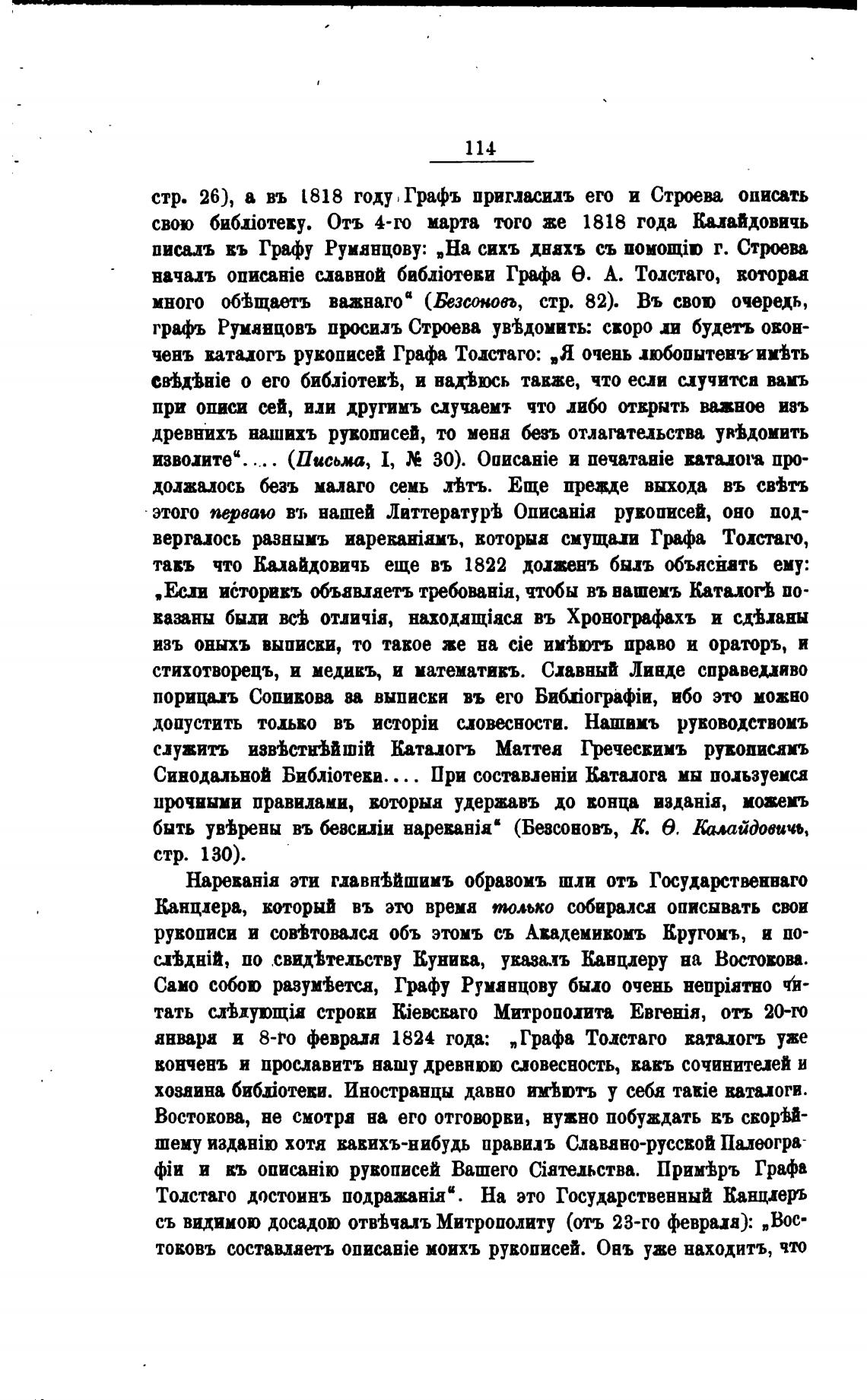 писалъ въ Графу Руманцову: „На сихъ днахъ съ г. Стри
