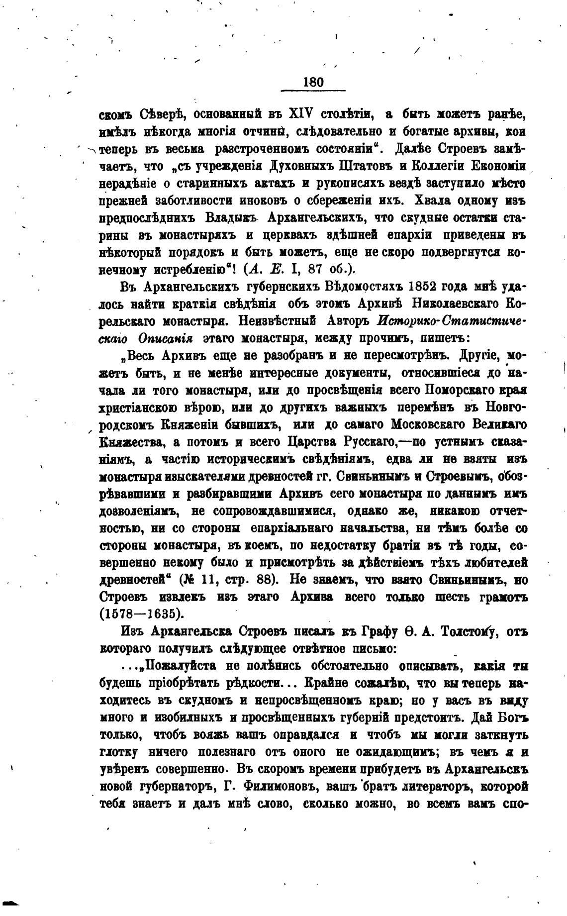 Изъ Архангељсва Строевъ пивцъ въ Графу е. А. Тоито<у, отъ