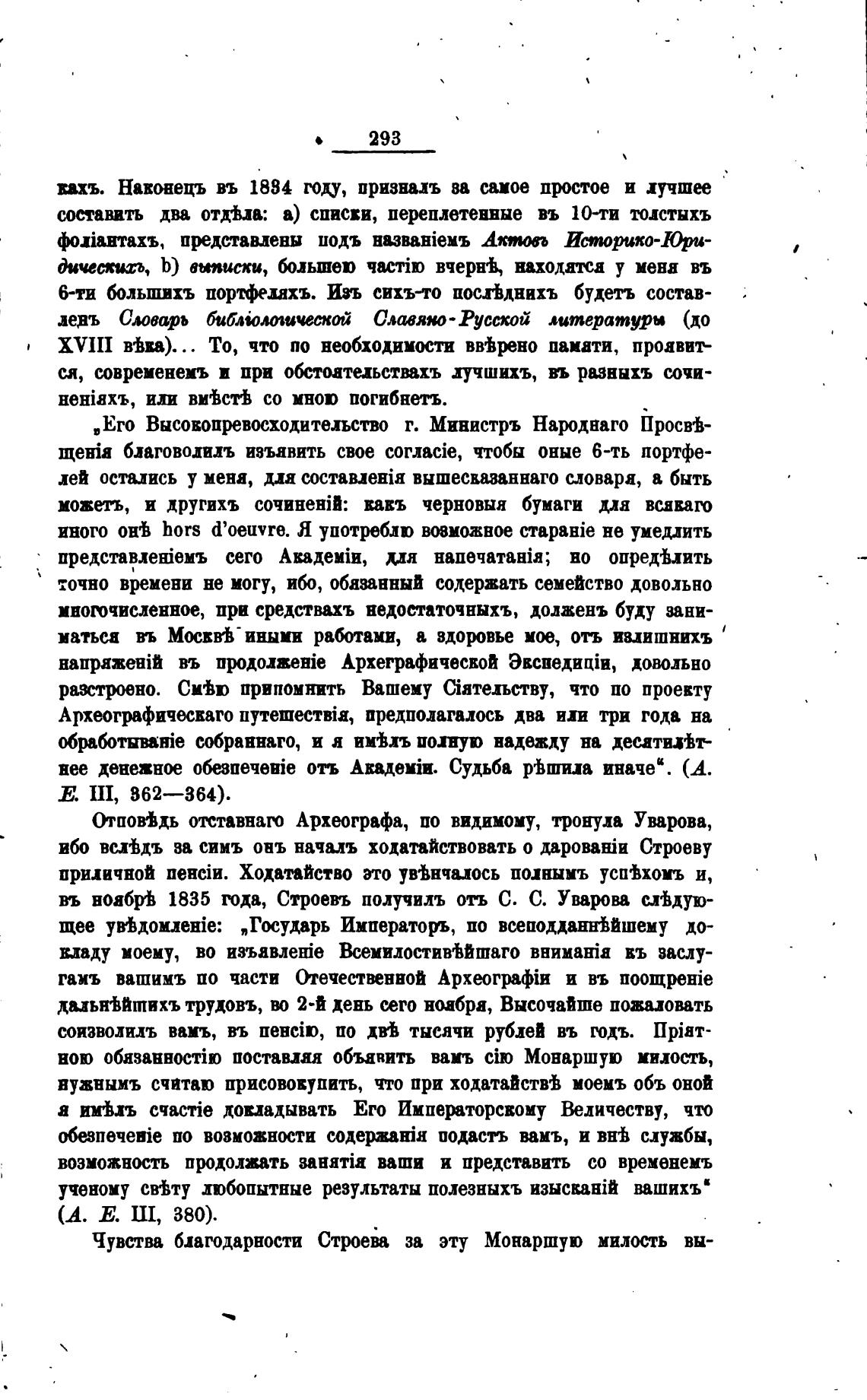 въ ноабф 1835 ода, Строевъ получилъ отъ С. С. Уварова с.“дую-