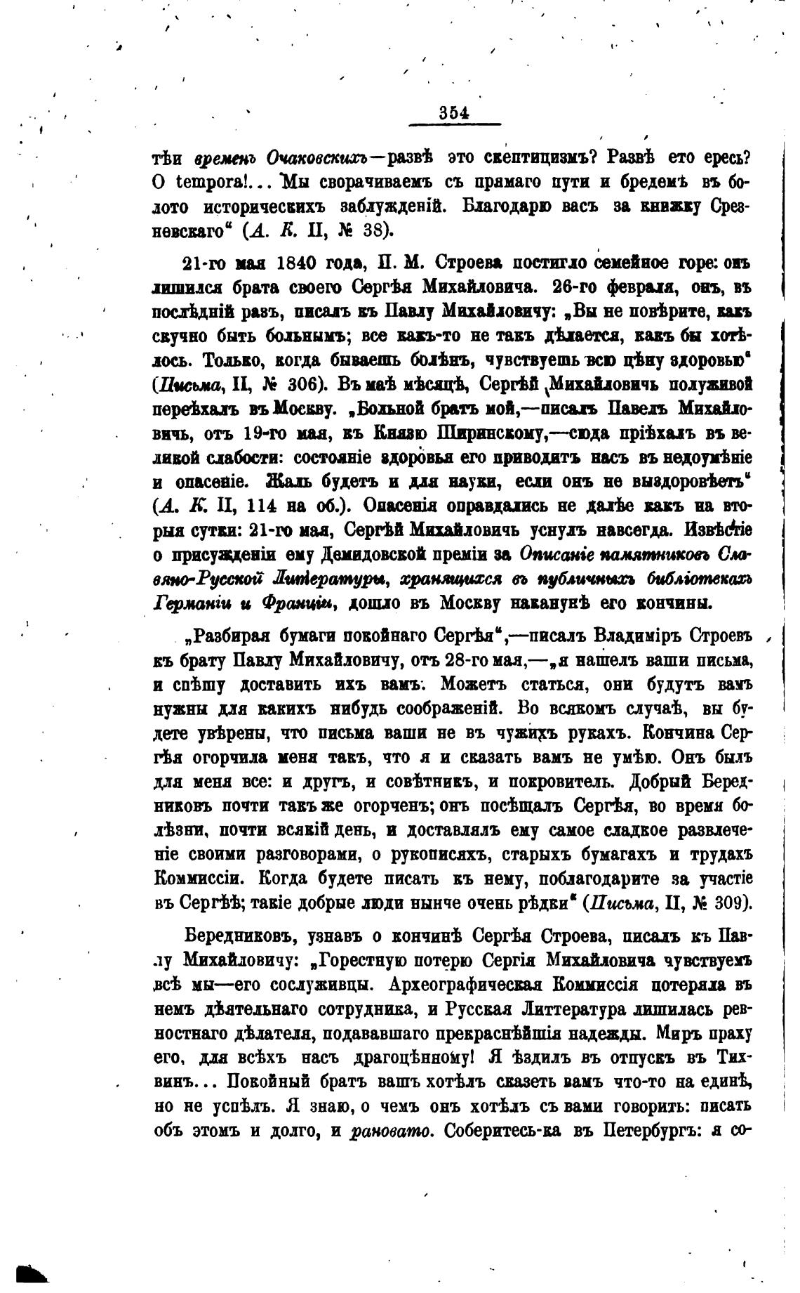 Береднивовъ, узнавъ о ЕОНЧИН± Серг±а Строева, писалъ кь Пав-