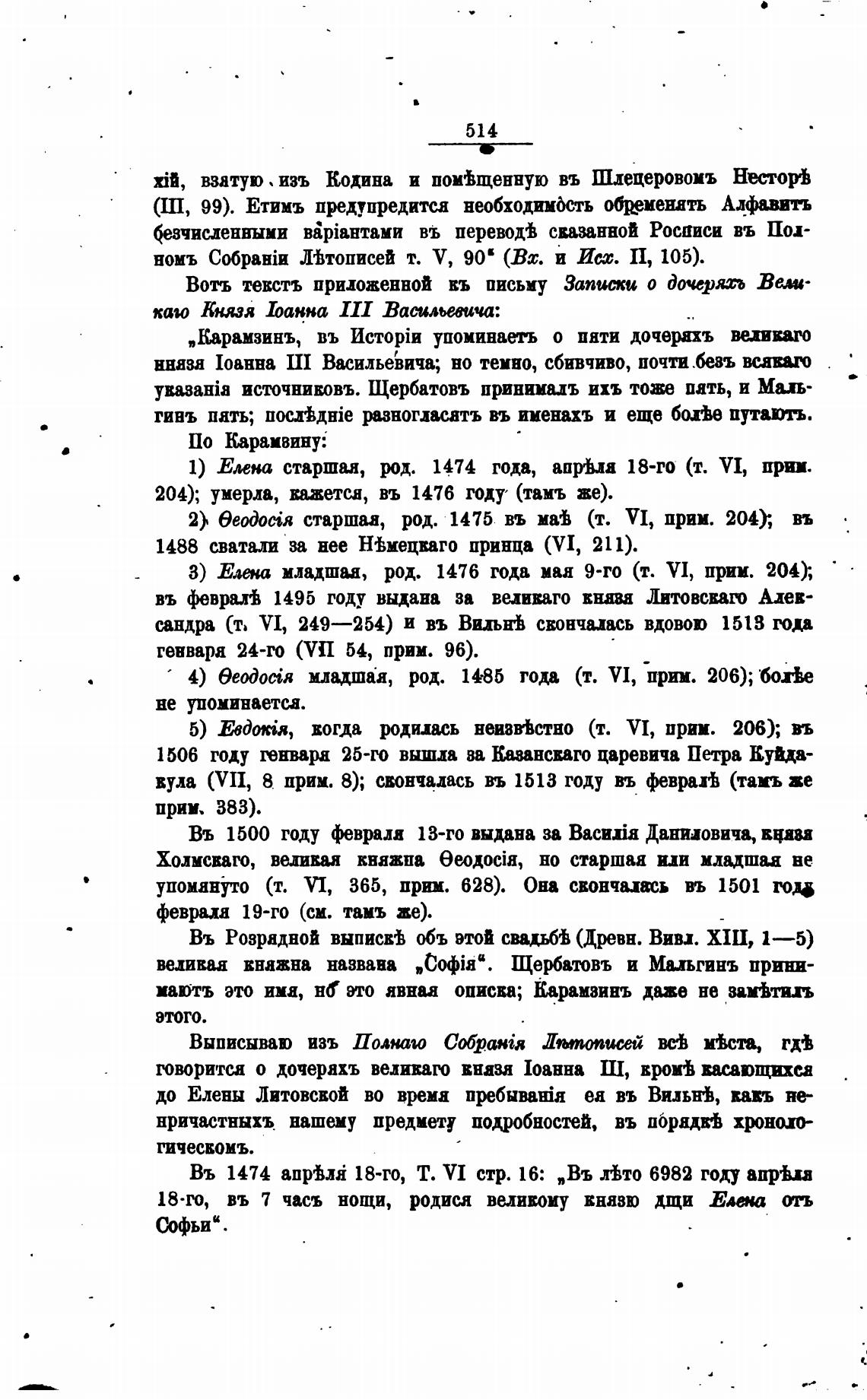 „Карамзинъ, въ упоминать о пяти дочерахъ вехиваго