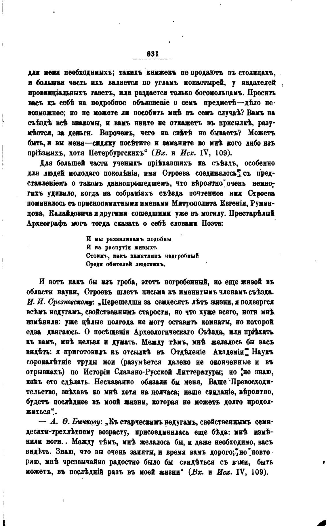 И. И. Срезневскому: „Перешедши 83 сидес.ать двть жизни, а подверти