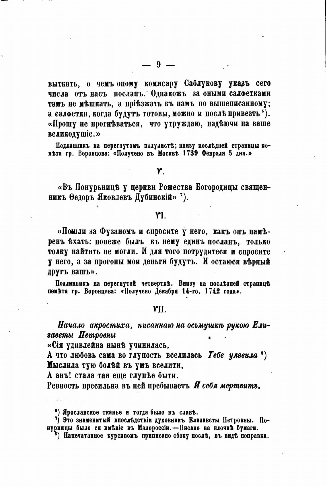 има тр. Воронцова: «Получено въ Москвв 1139 Феврия 5 дня.»