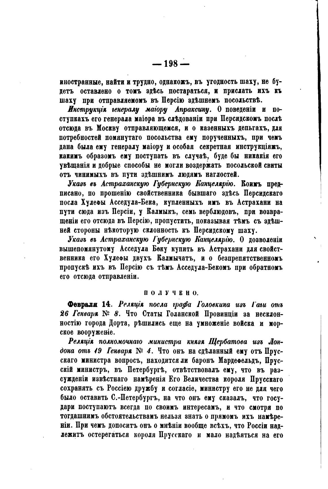 Февраля 14. Реляфя посла графа Головкина изб Гаш отпа