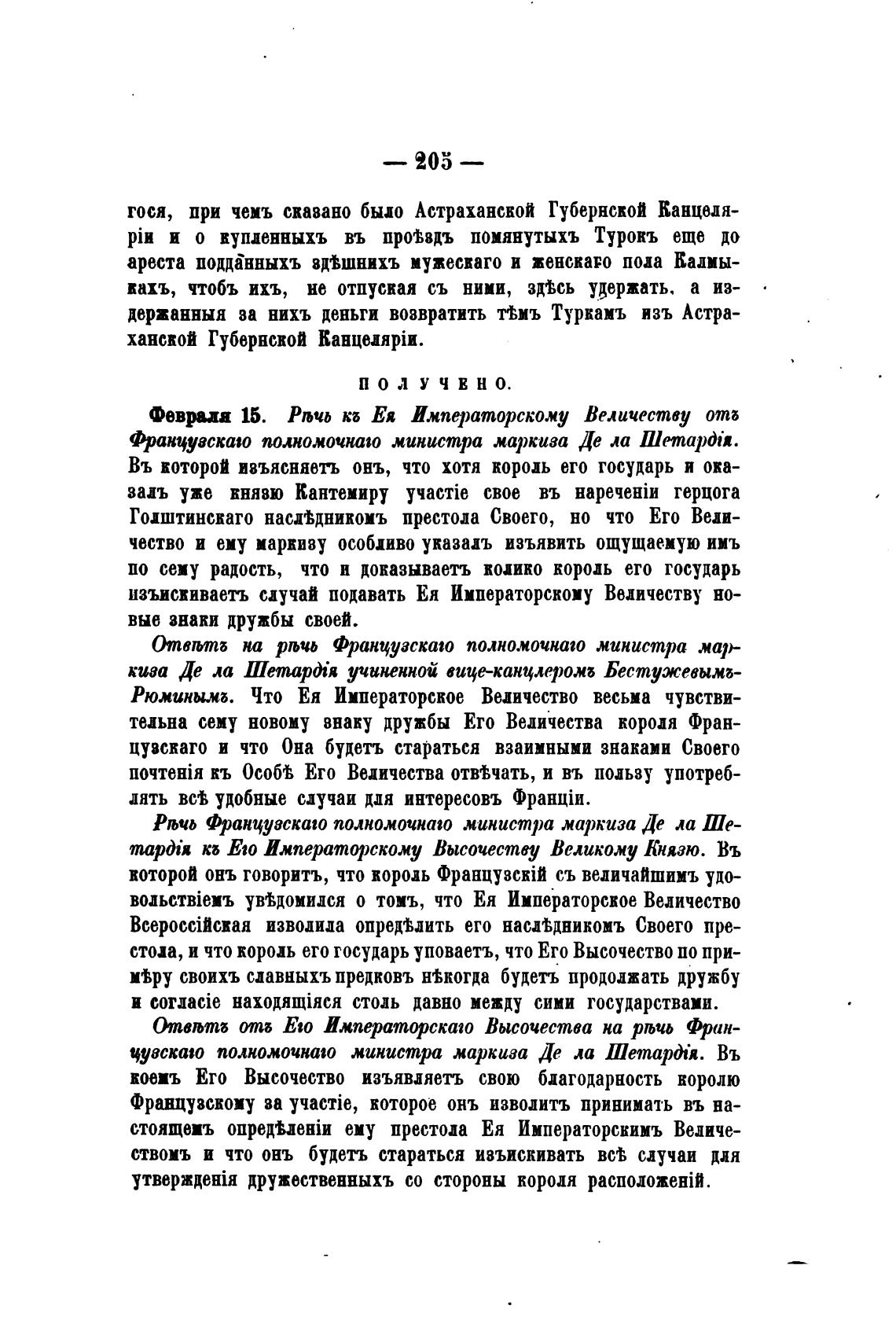 чество и ему маркизу особливо указал изъявить ощущаемую имъ