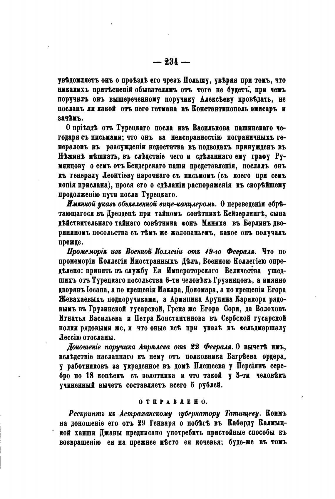 Рескрипта Кб Астрасанскожу губернатору Татищеву. Коимъ