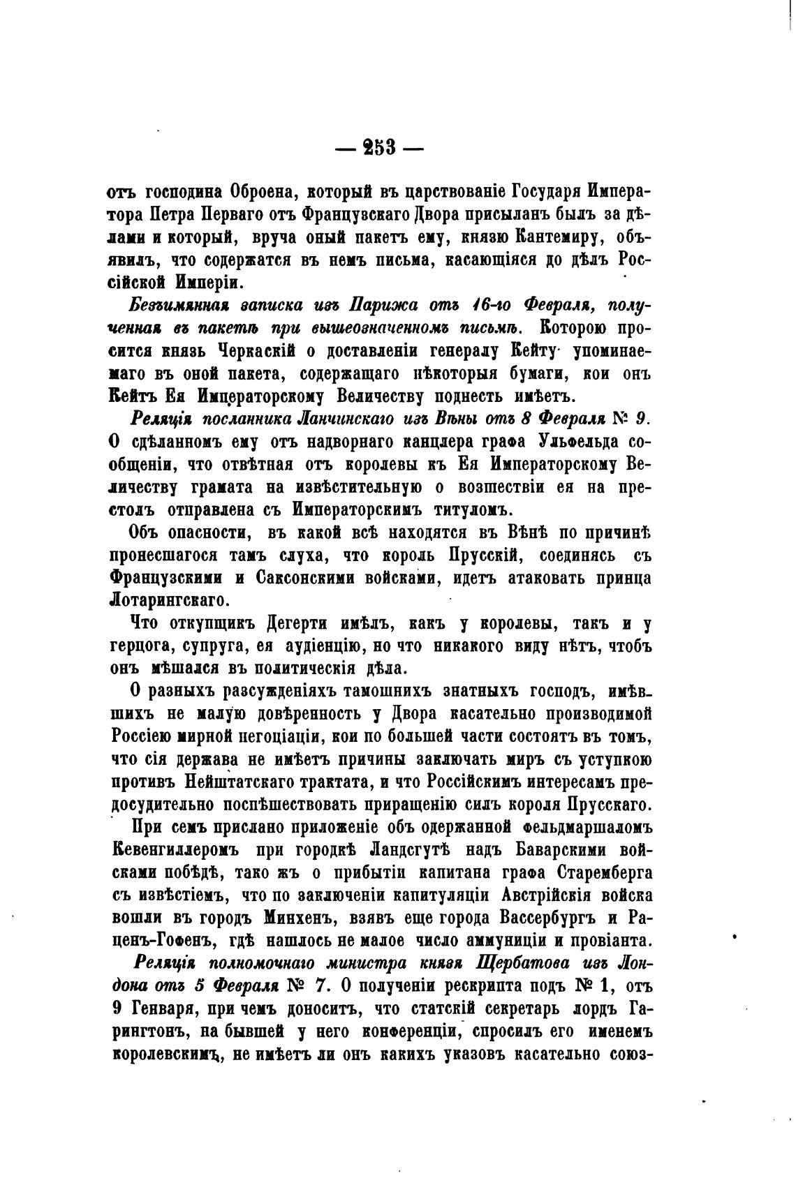 Реляфя полномочнаго министра княвя Щербатова изб Лон-