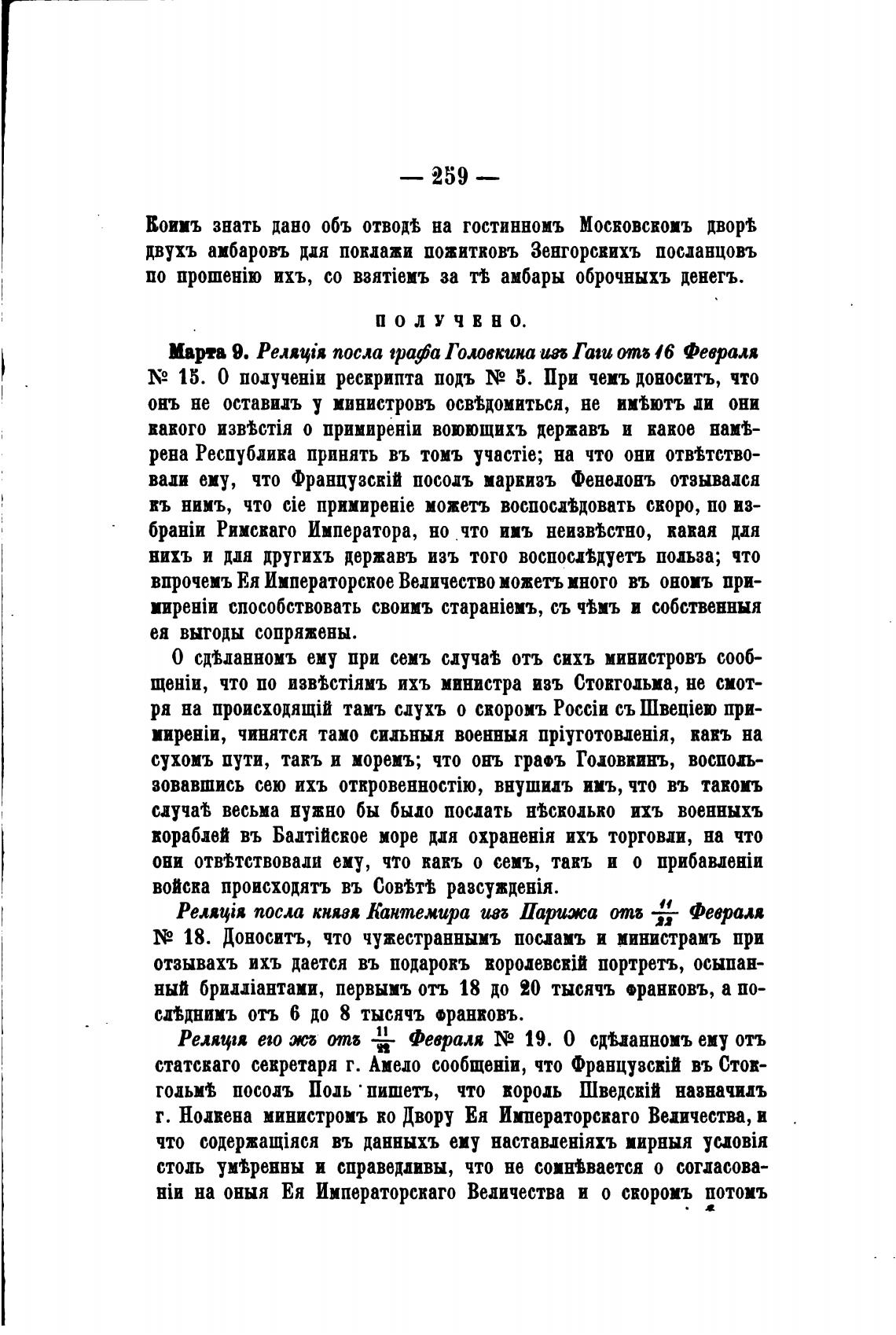 Марта 9. РеляШя посла tpa@a Головкина ил Гаш отб 46 Февраля