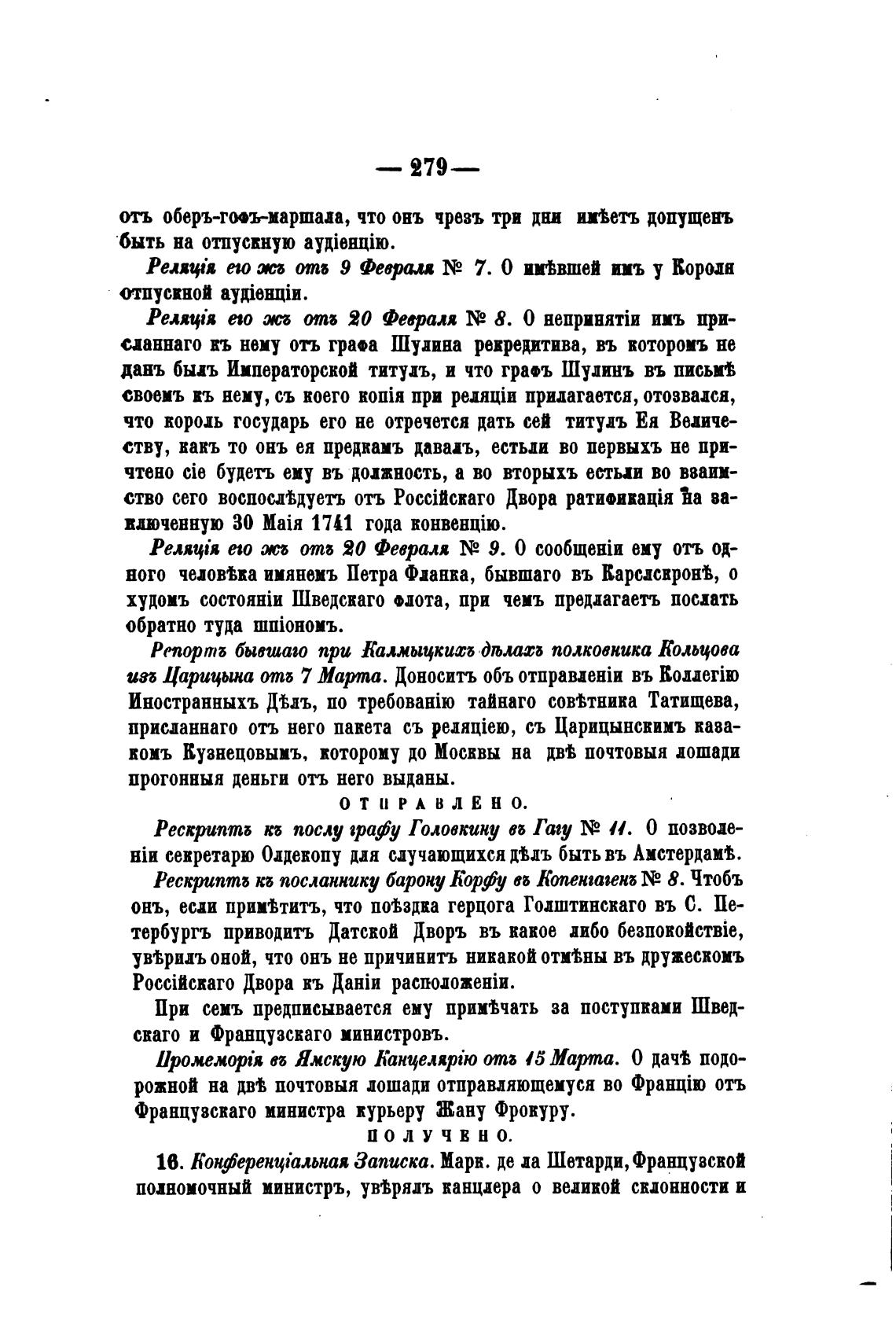 16. КонференцТьная Записка. Марк. де да Шетарди, Французской
