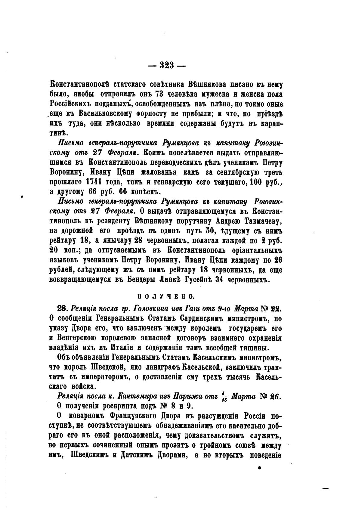 РеляШв посла к. Кантемира изб Парижа опи Мартпа 26.