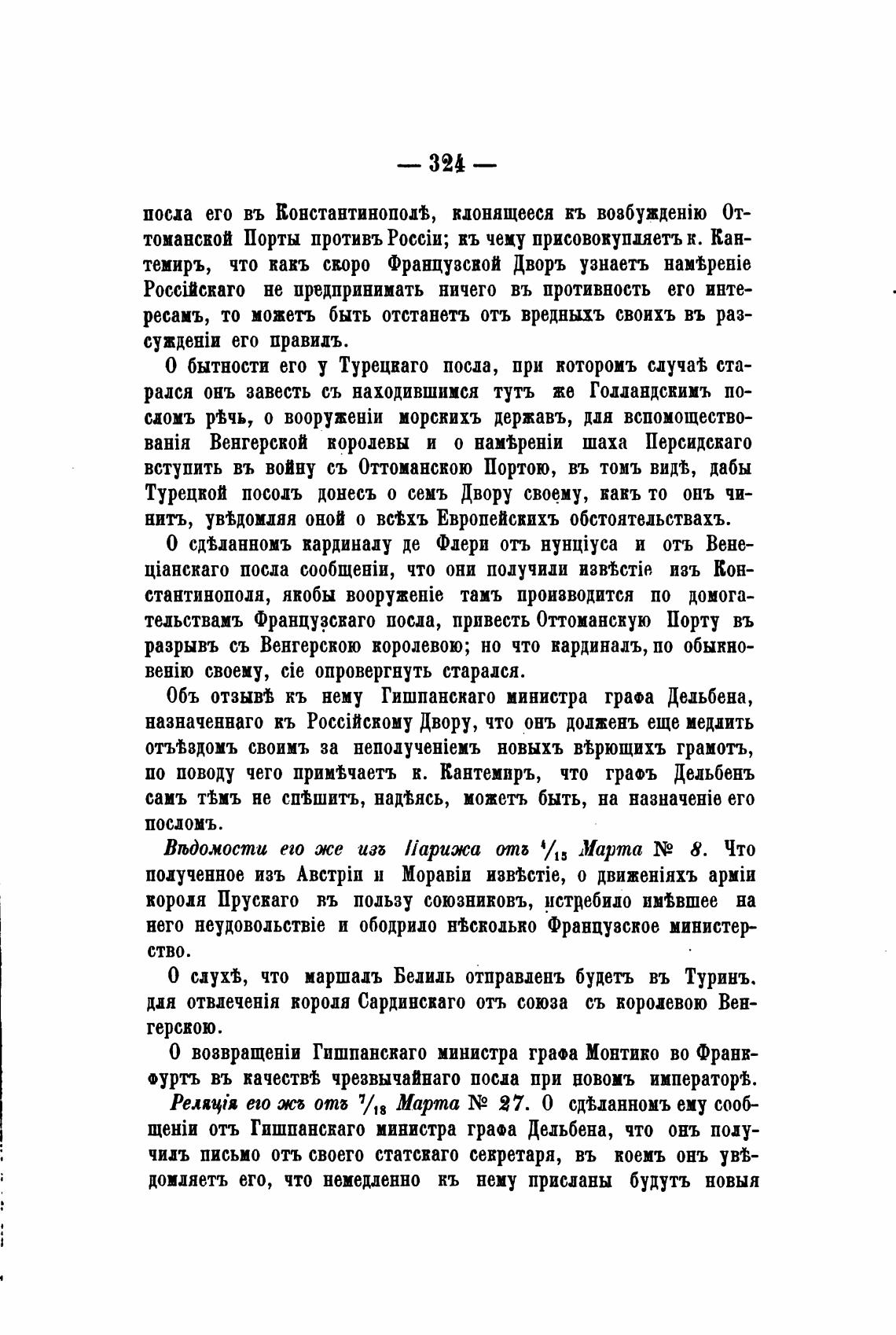 по поводу чего прим“аетъ к. Кантемиръ, что граоъ Дедьбенъ