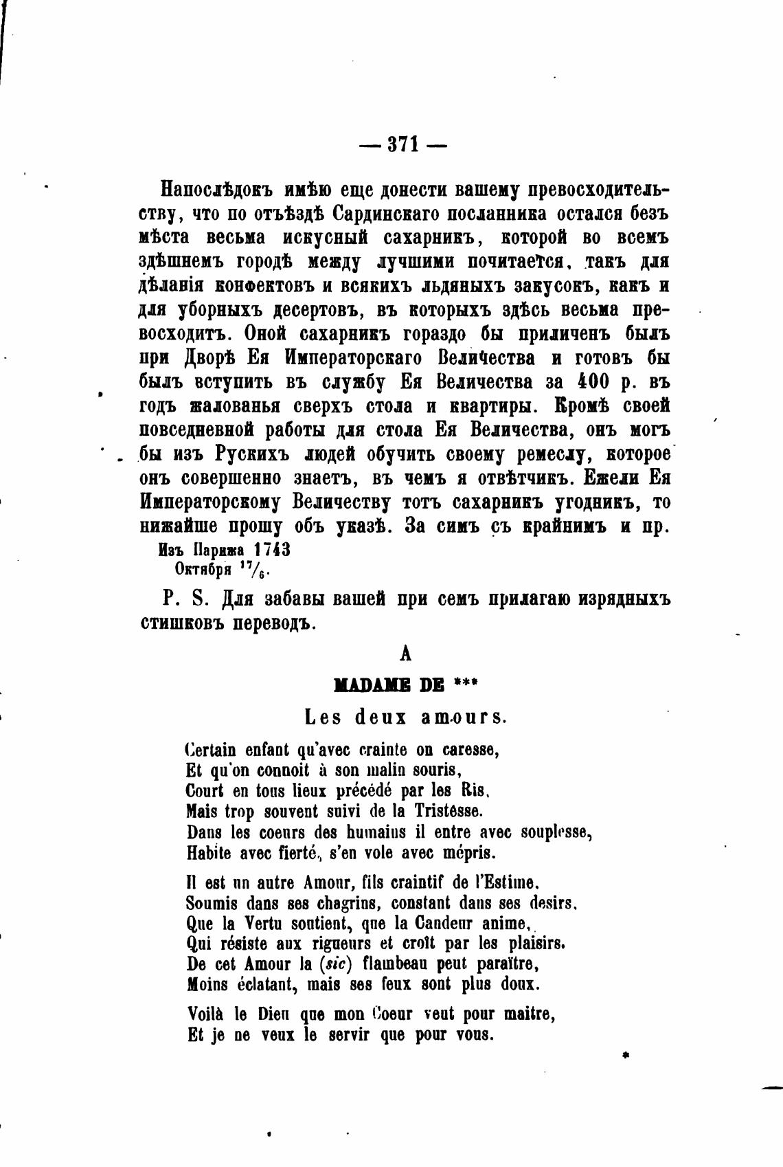 Р. S. Дия забавы вашей при семь прилагаю изрядныхъ