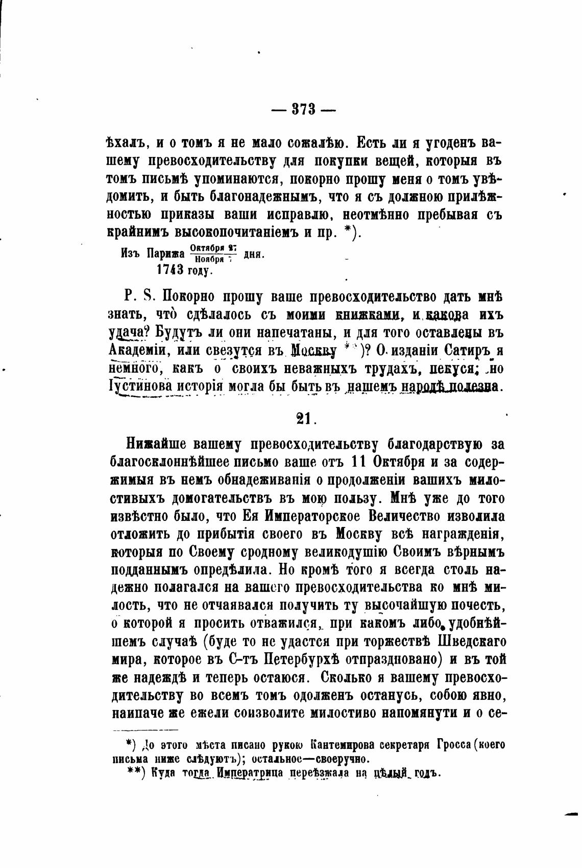 и) До этого мыта писано рукою Кантемирова секретаря Гросса (коего
