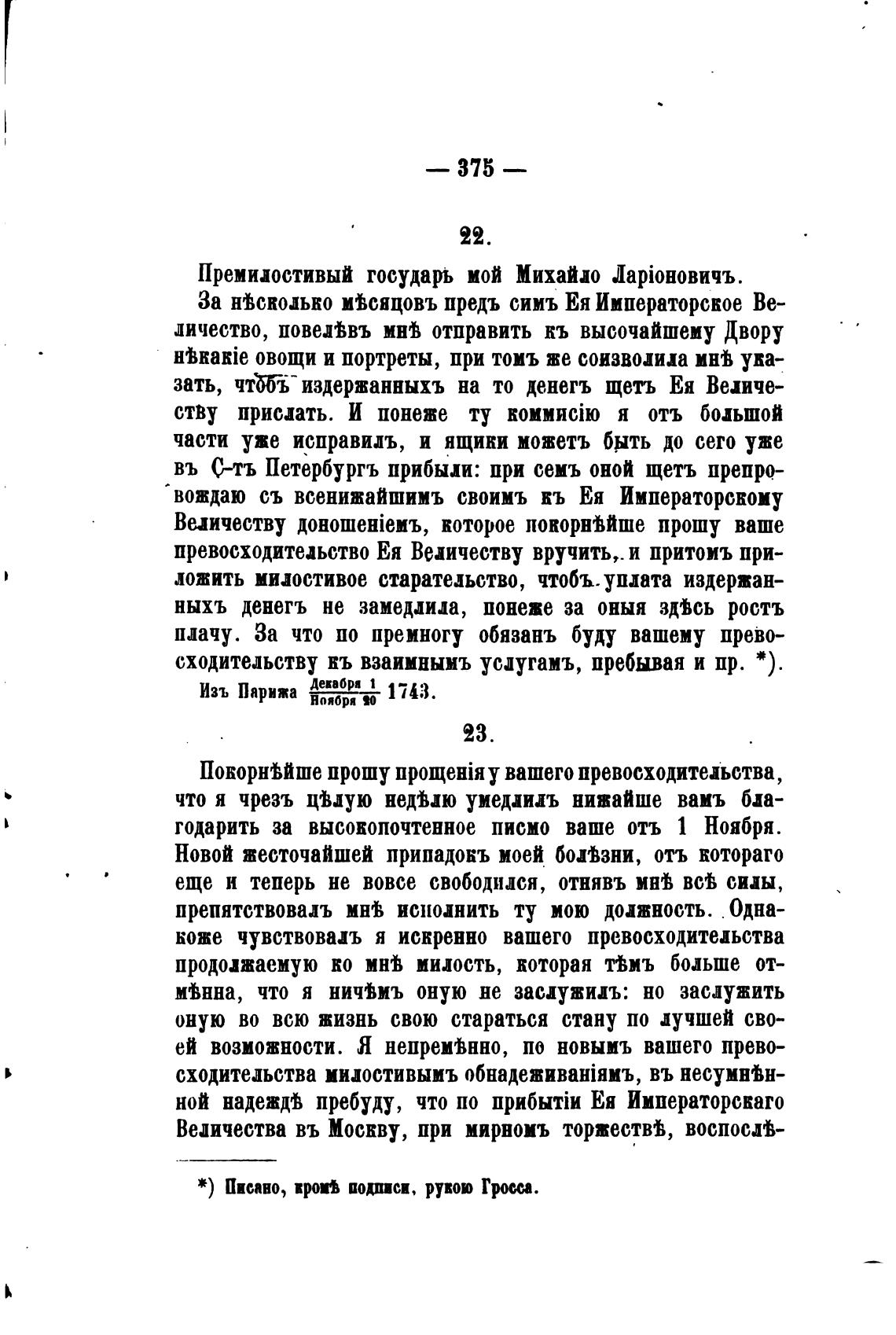 тодарить за высокопочтенное писмо ваше отъ 1 Ноября.