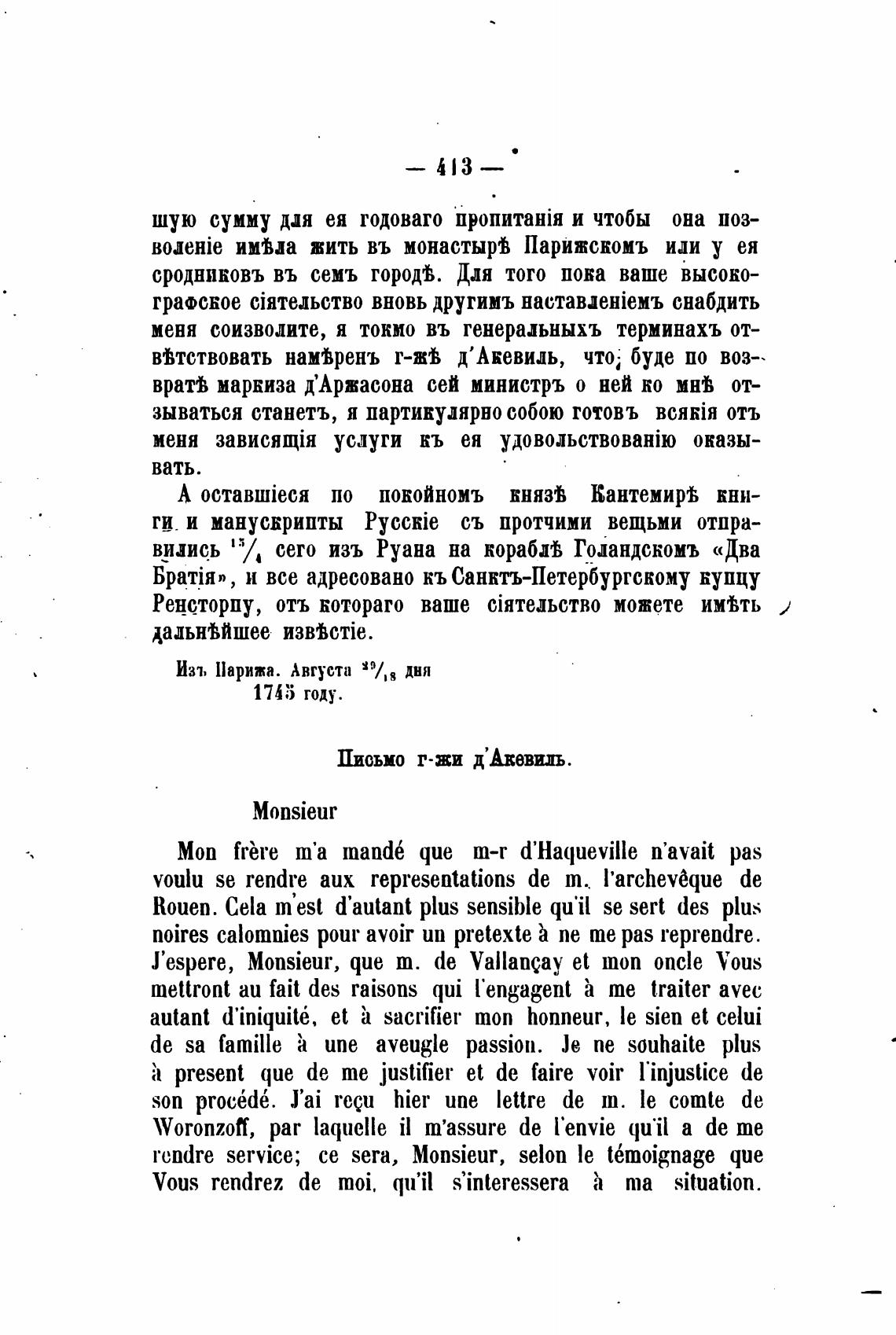 Письмо г-жи д'Авевиль
