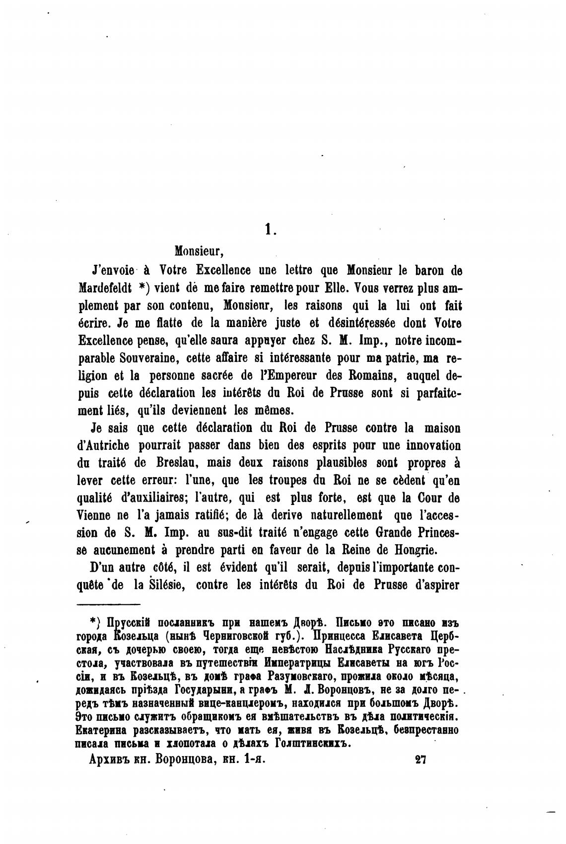 Архивъ кн. Воронцова, кн. 1-я.