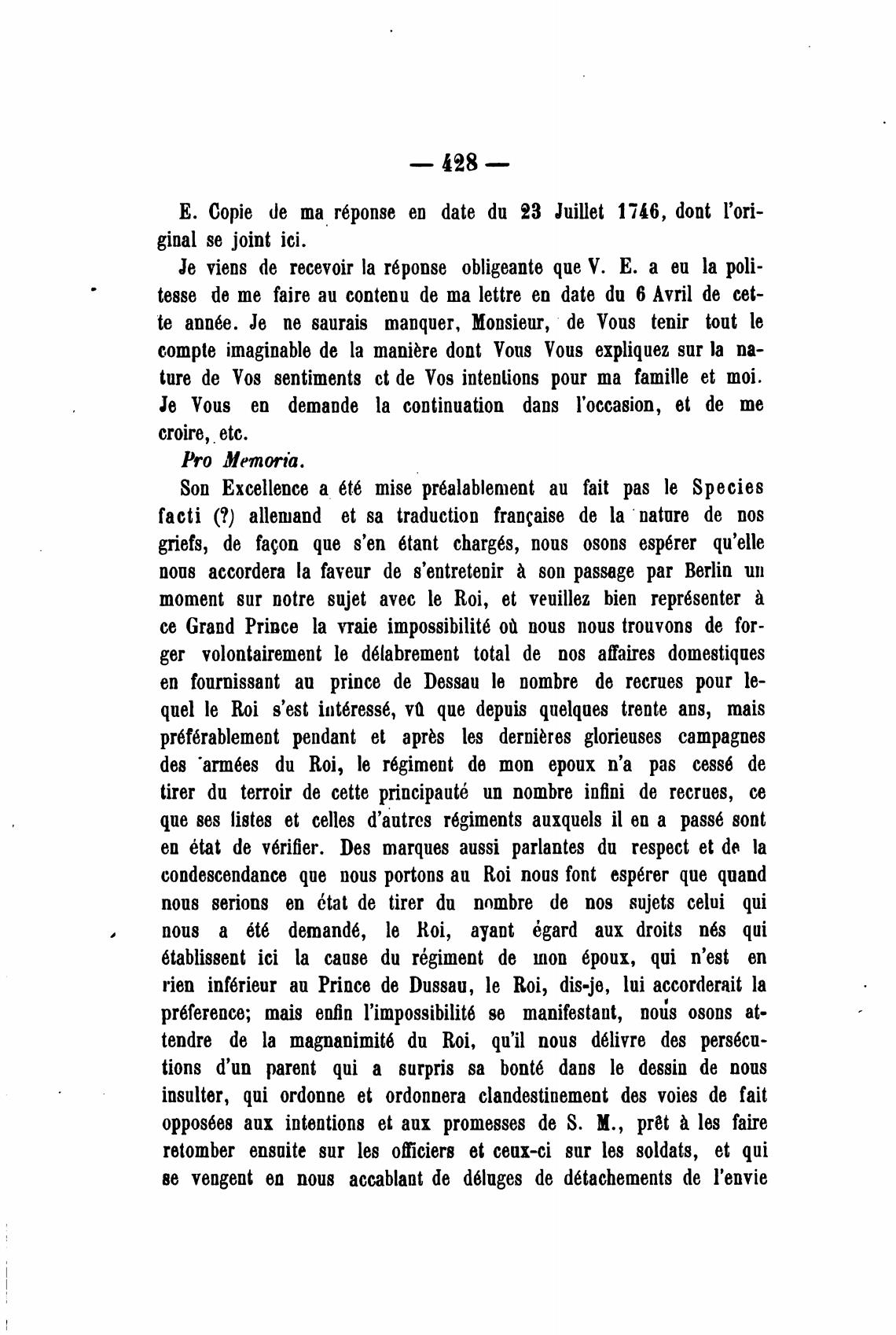 Е. Copie de та T6ponse еп date du 23 Juillet 1746, dont l'ori-