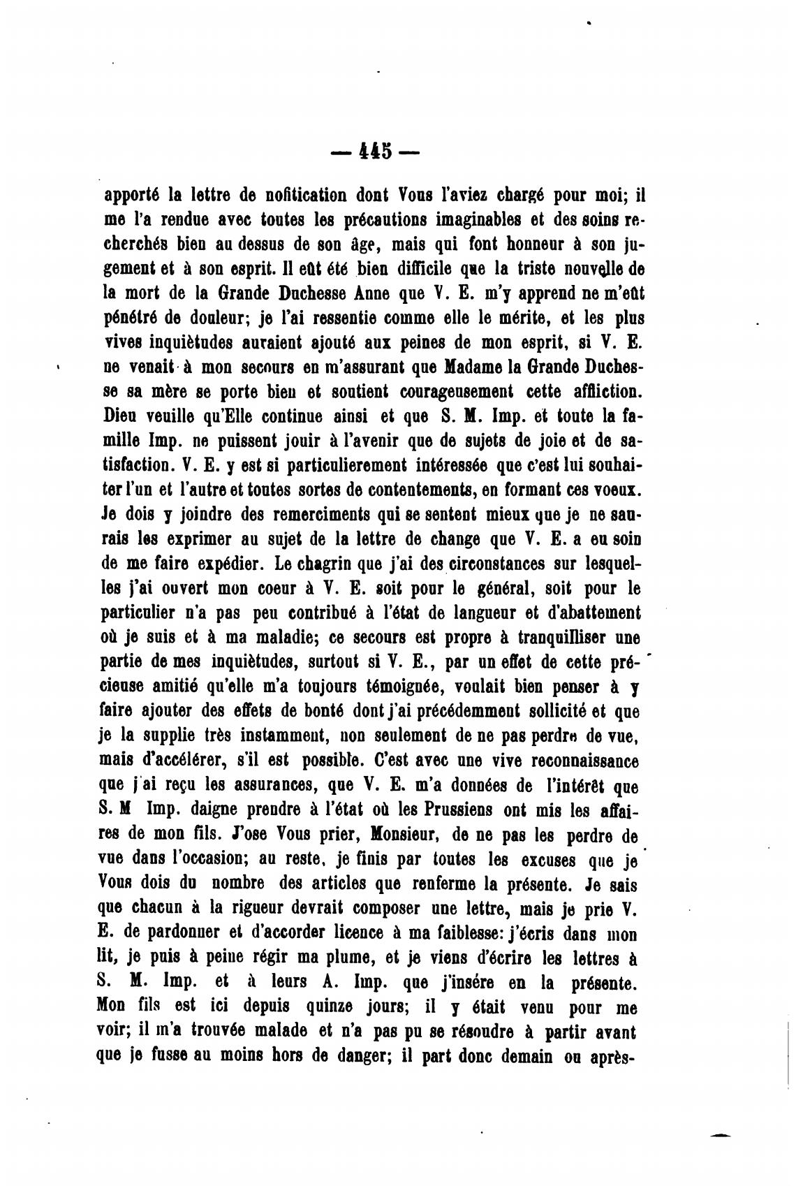 la mort de la Grande Duchesse Аппе que У. Е. т'у apprend пе m'eat