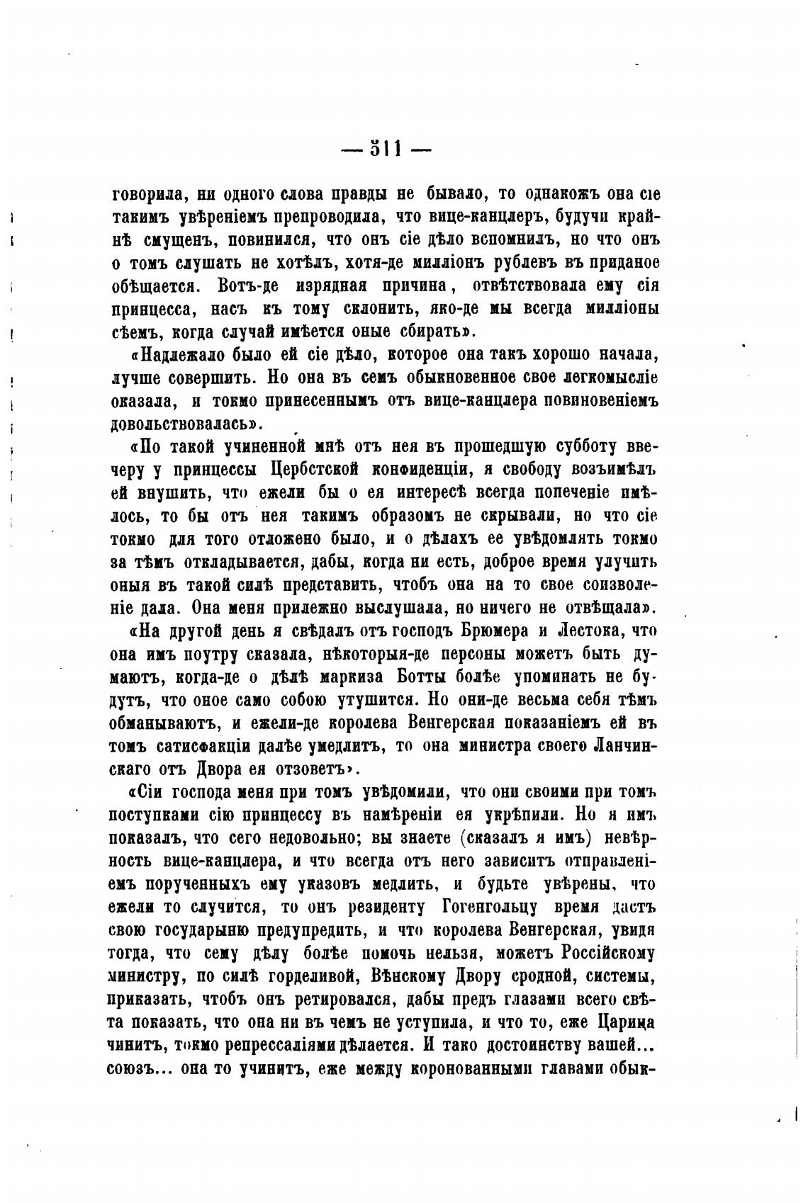 «На другой день я свыалъ отъ господь Брюмера и Лестока, что