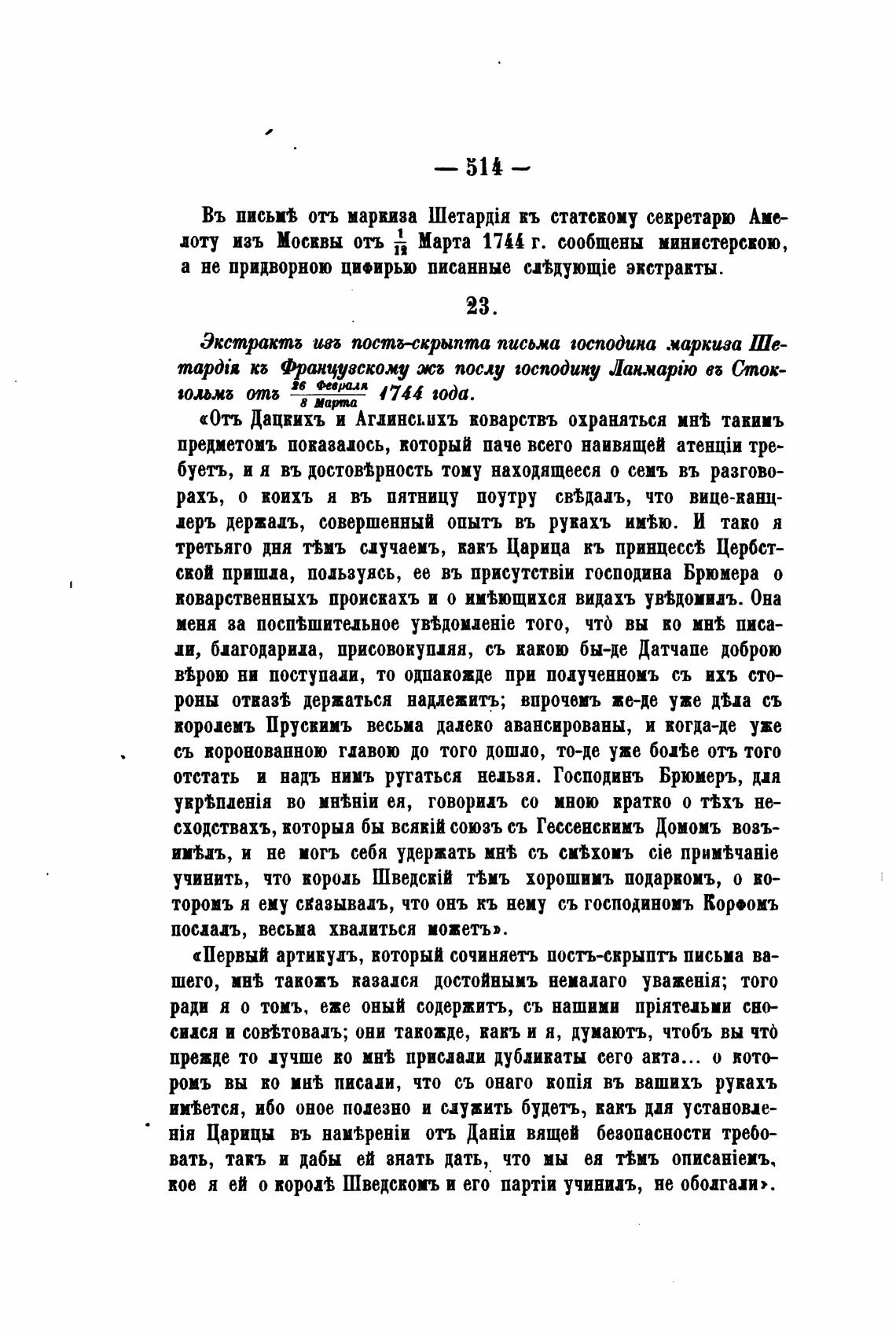 доту изъ Москвы отъ Марта 1744 г. сообщены министерскою,