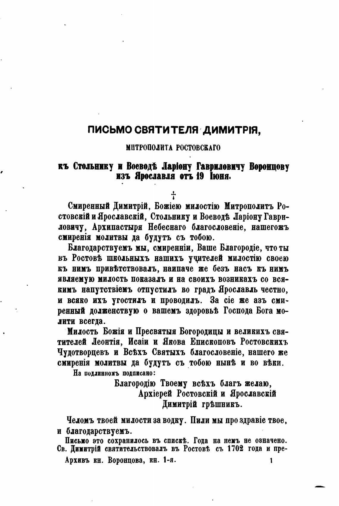 ПИСЬМО СВЯТИТЕЛЯ ДИМИТРЈЯ,
