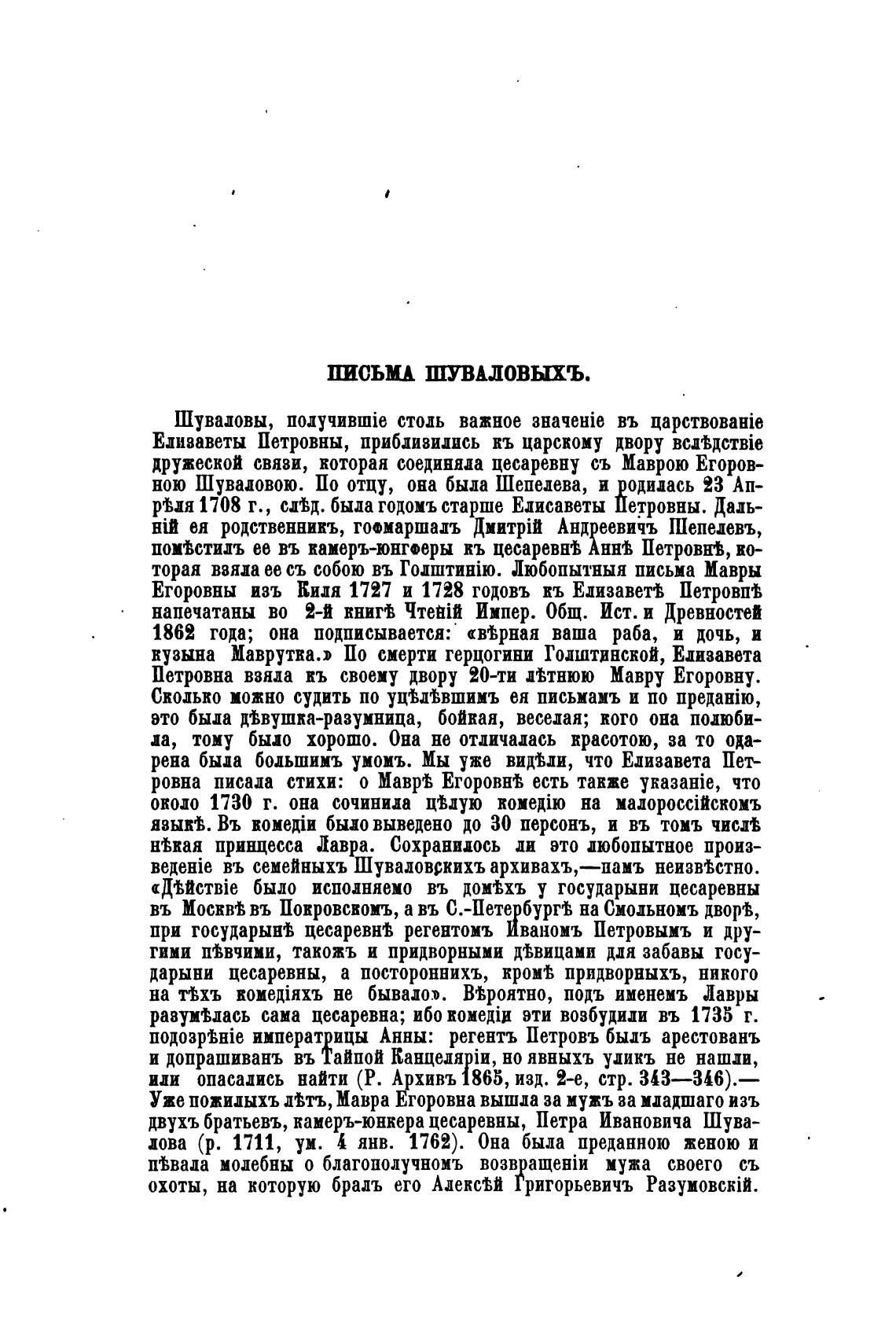 дружеской связи, которая соединяла цесаревну съ Маврою Егоров-