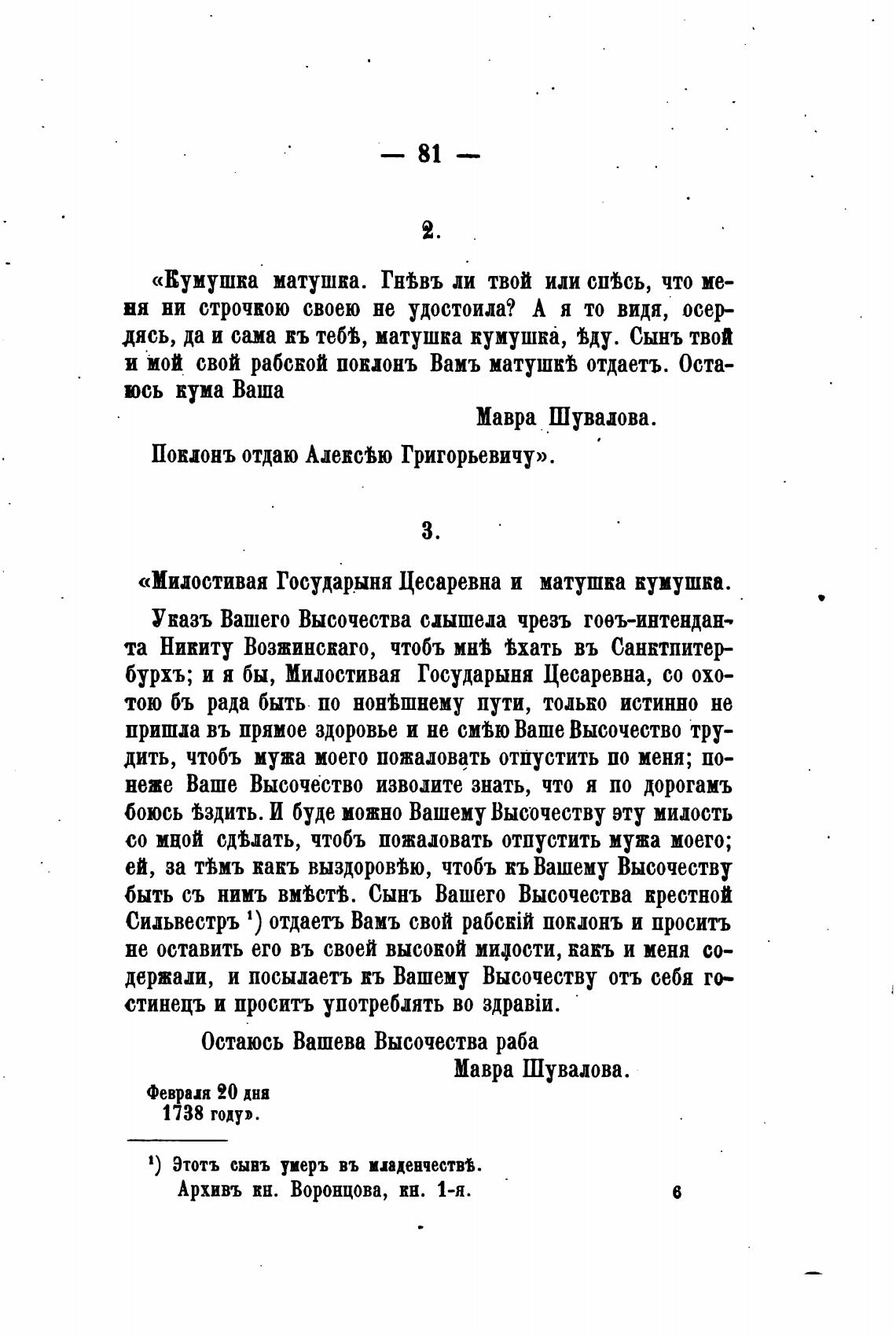 «Миостивая Государыня Цесаревна и матушка кумушка.
