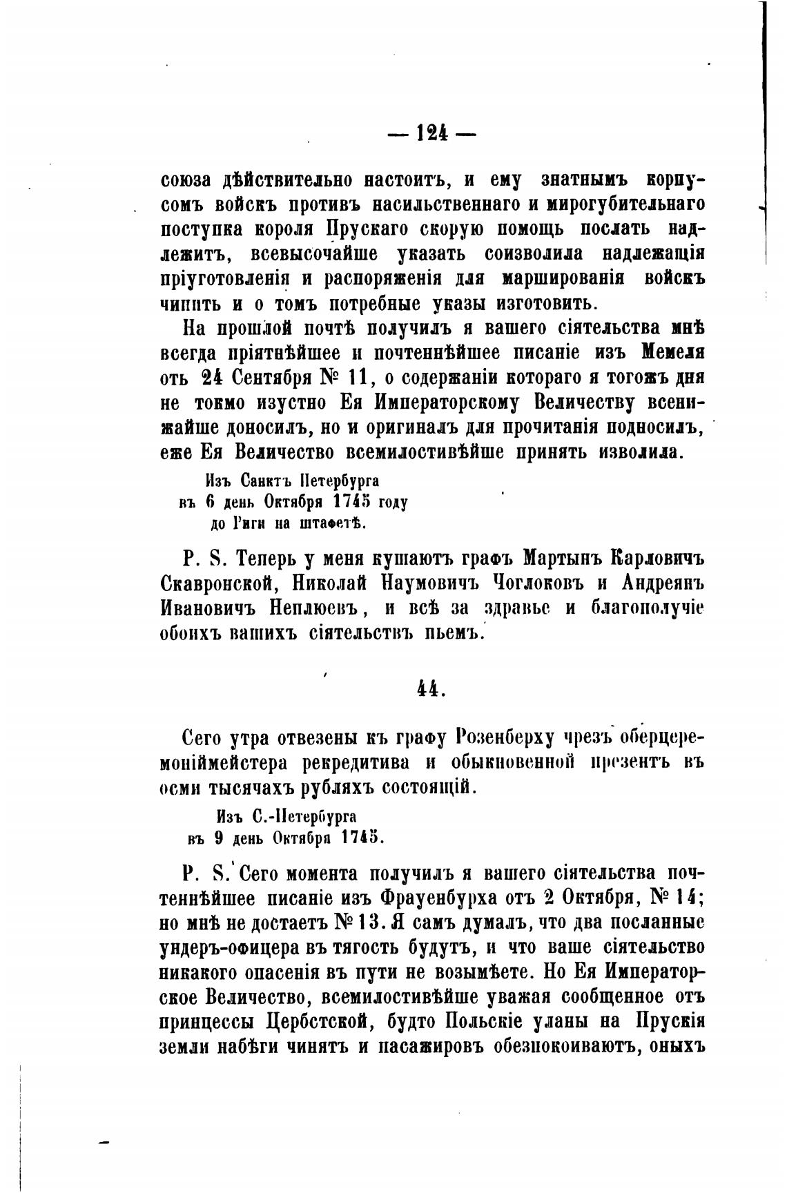 Сего утра отвезены кь гроу Розенберху чрезъ оберцере-