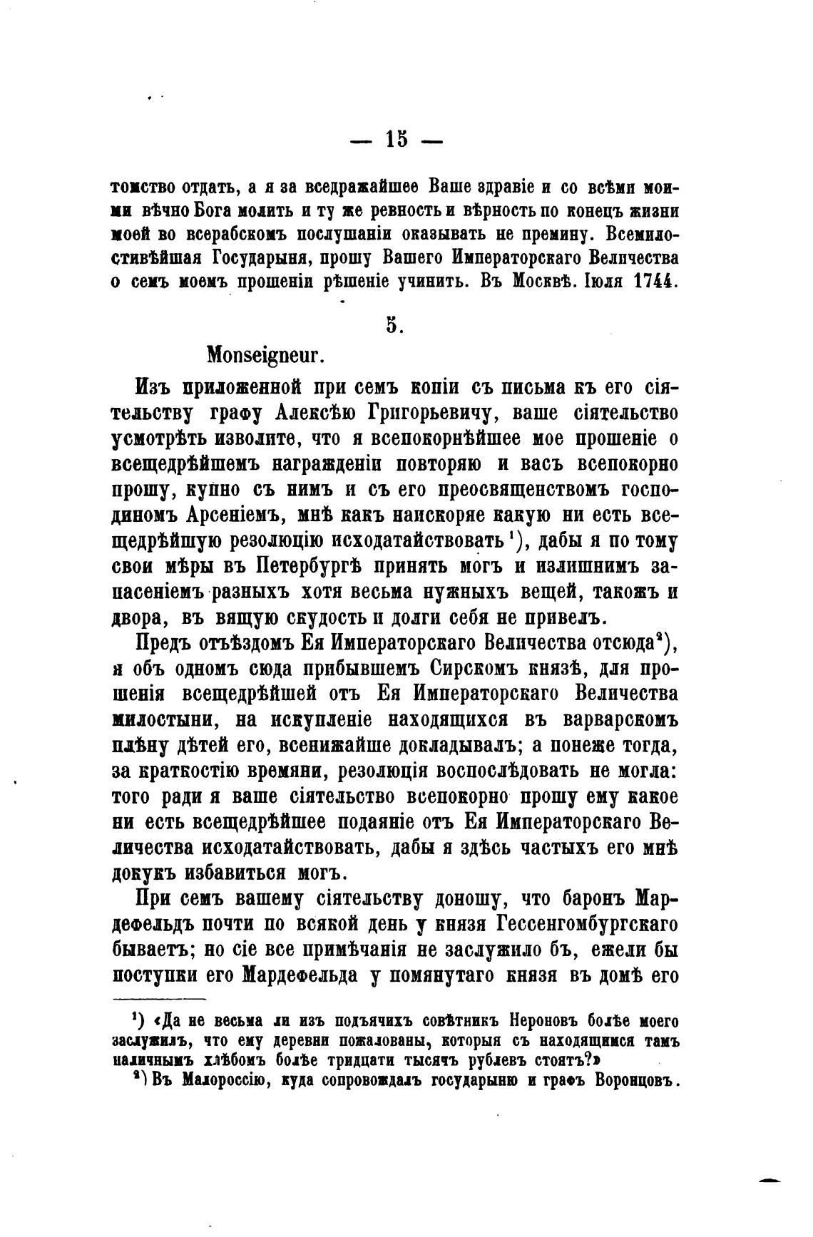 Предъ отъшдомъ Ея Императорскаго Величества отсюда),