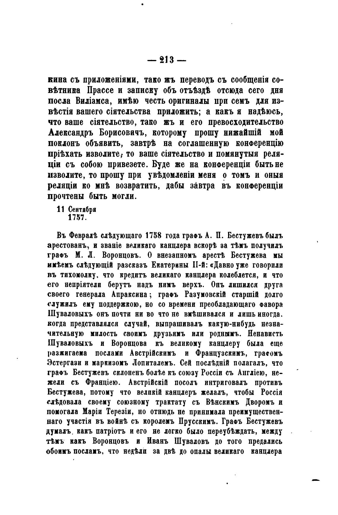 Въ ФевраМ слдующаго 1758 года трафь А. П. Бестужевъ был