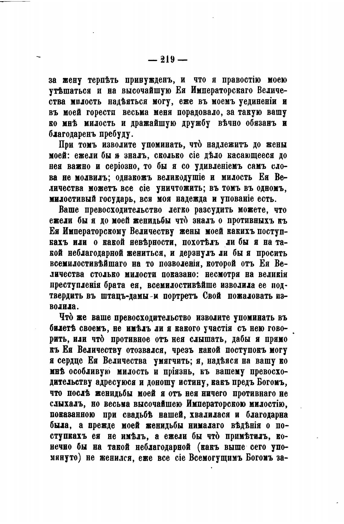 Ея Императорскому Величеству жены моей какихъ поступ-