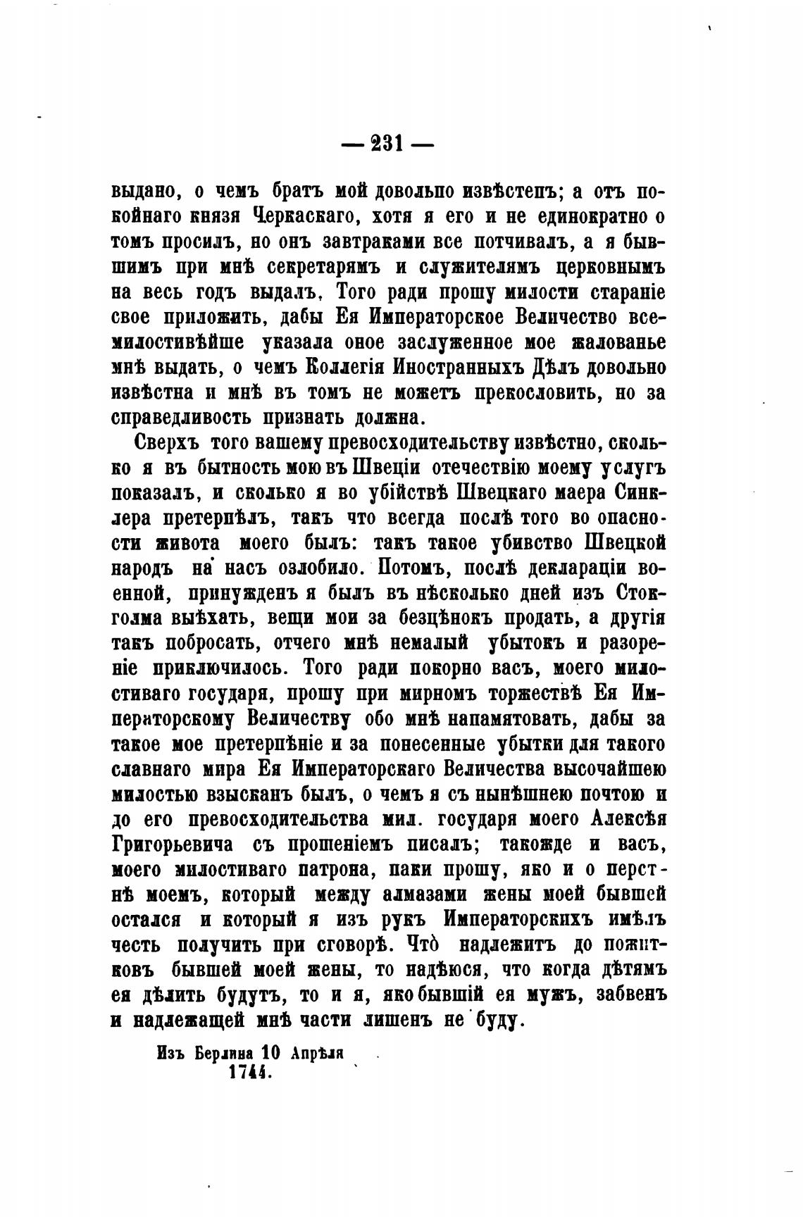 стиваго государя, прошу при мирномъ Ея Им-