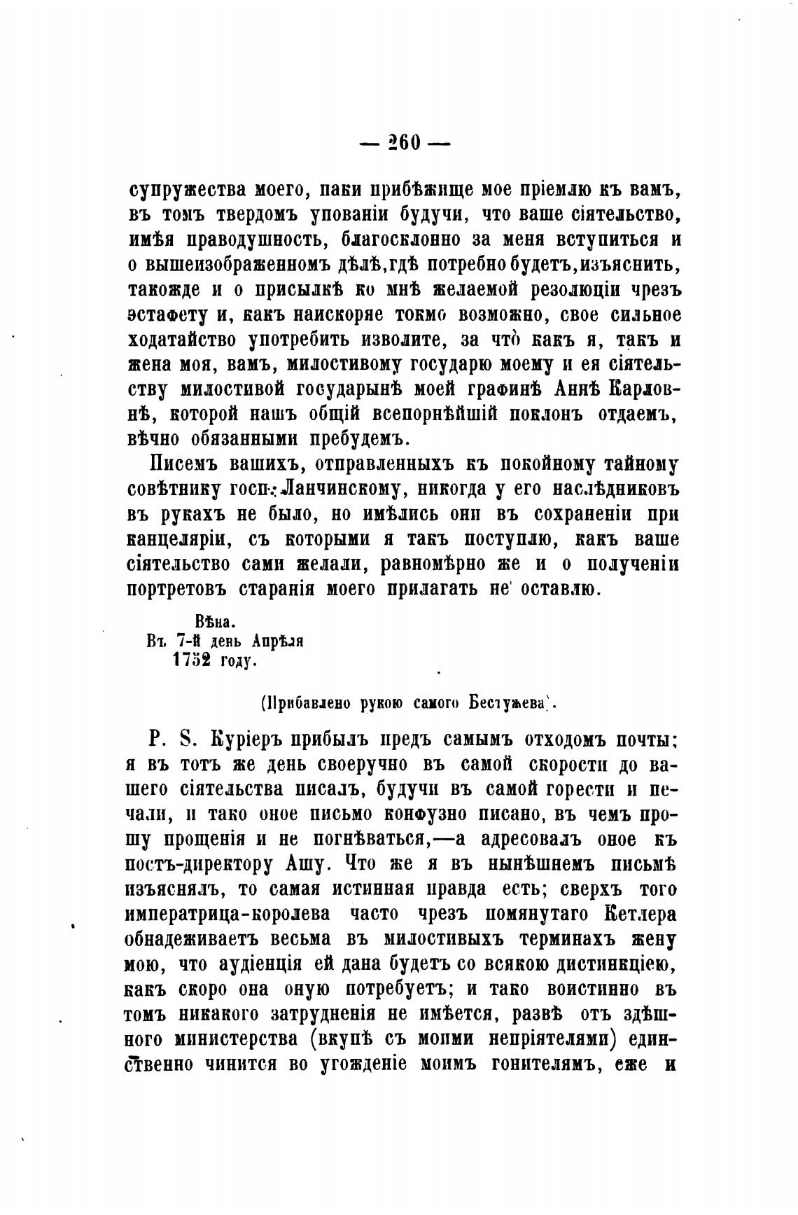 Р. S. kypiepb прибыль предъ самымъ отходомъ почты;