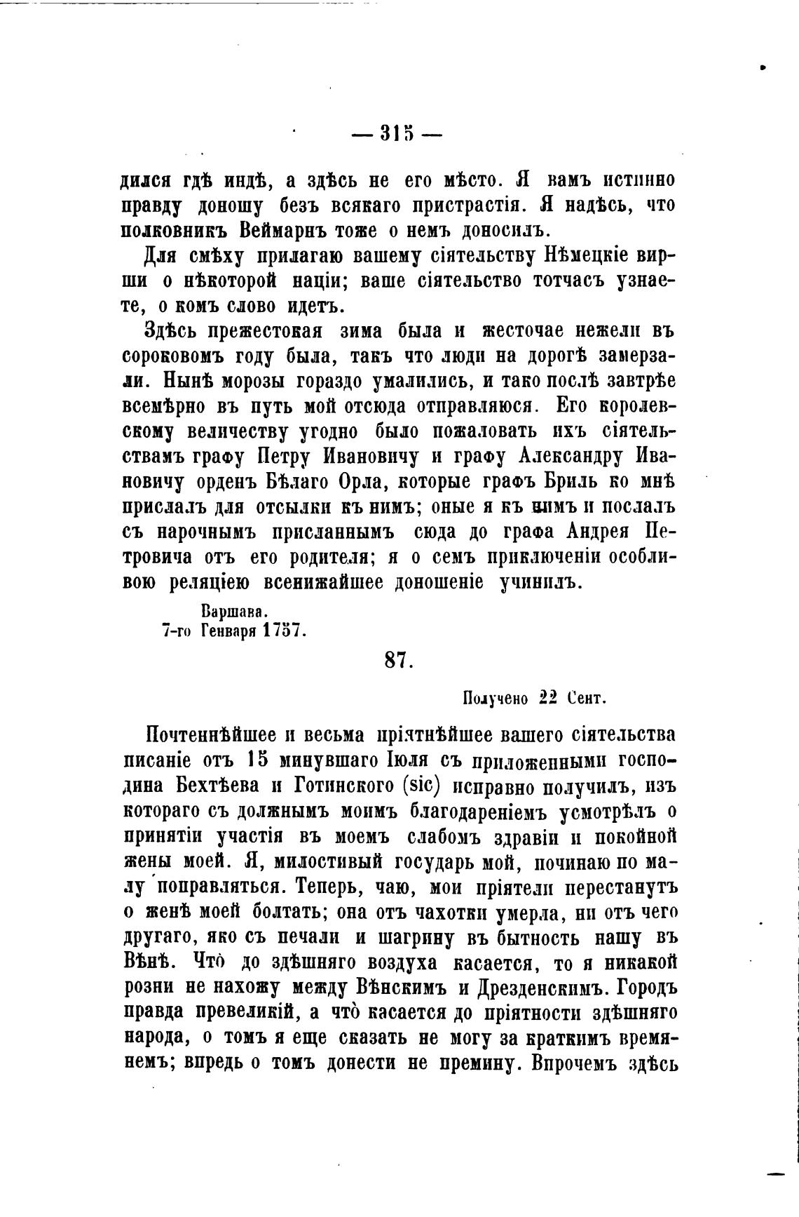 немъ; впредь о томъ донести не премину. Впрочемъ з$сь