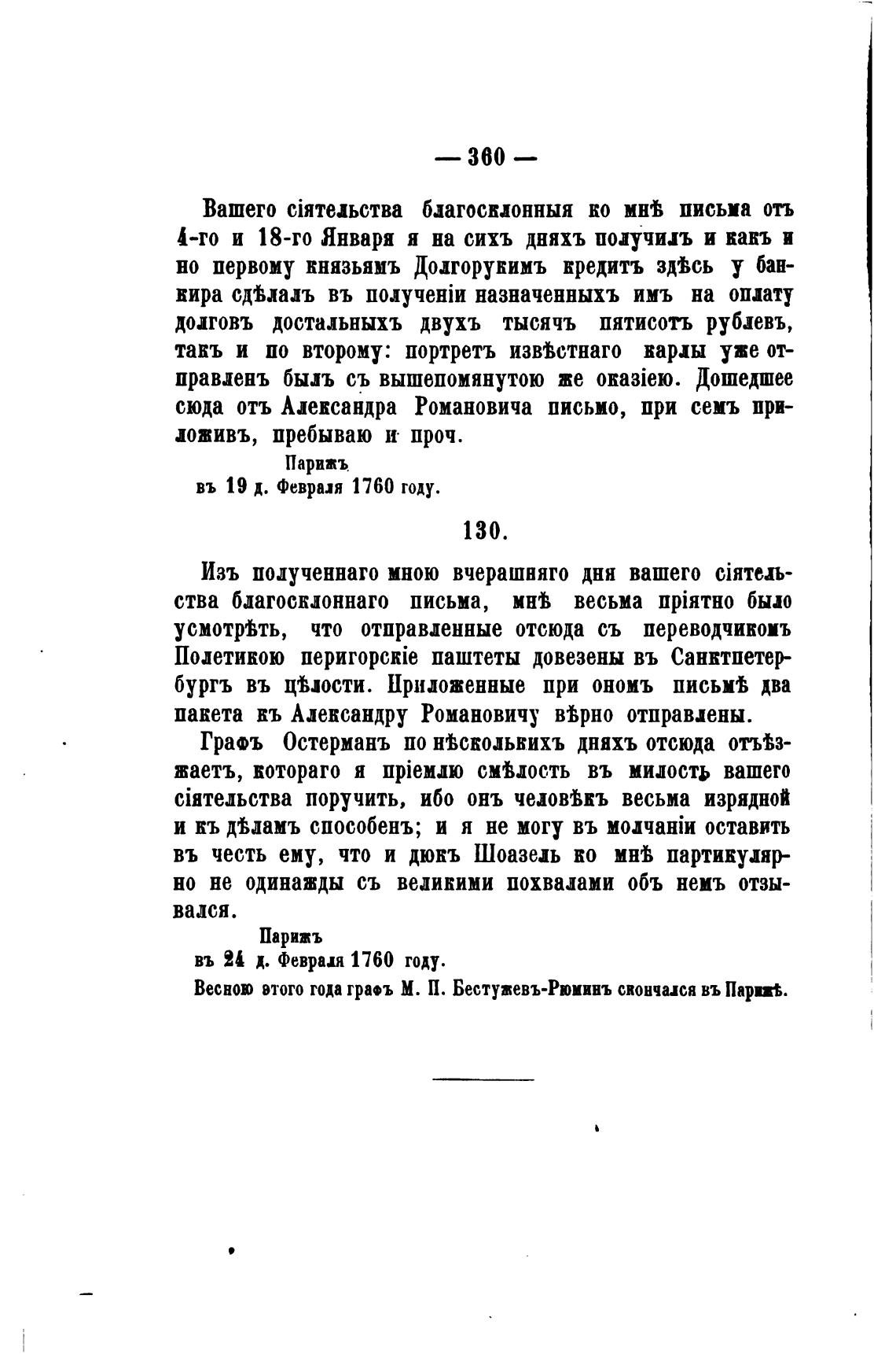 Весною этого года гра.ъ М. П. Бестужевъ-Рюиинъ свончися въ Пари“