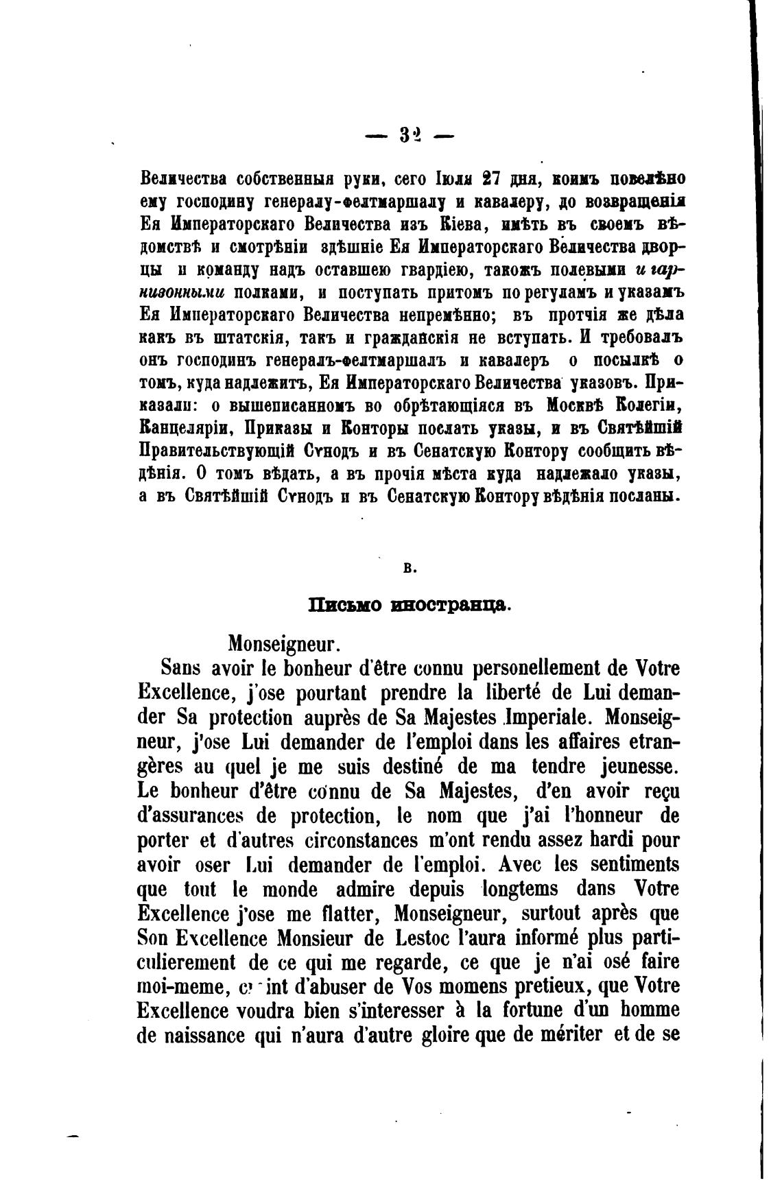 онъ господинъ генералъ-•елтмаршалъ и кавадеръ о посылк•в о