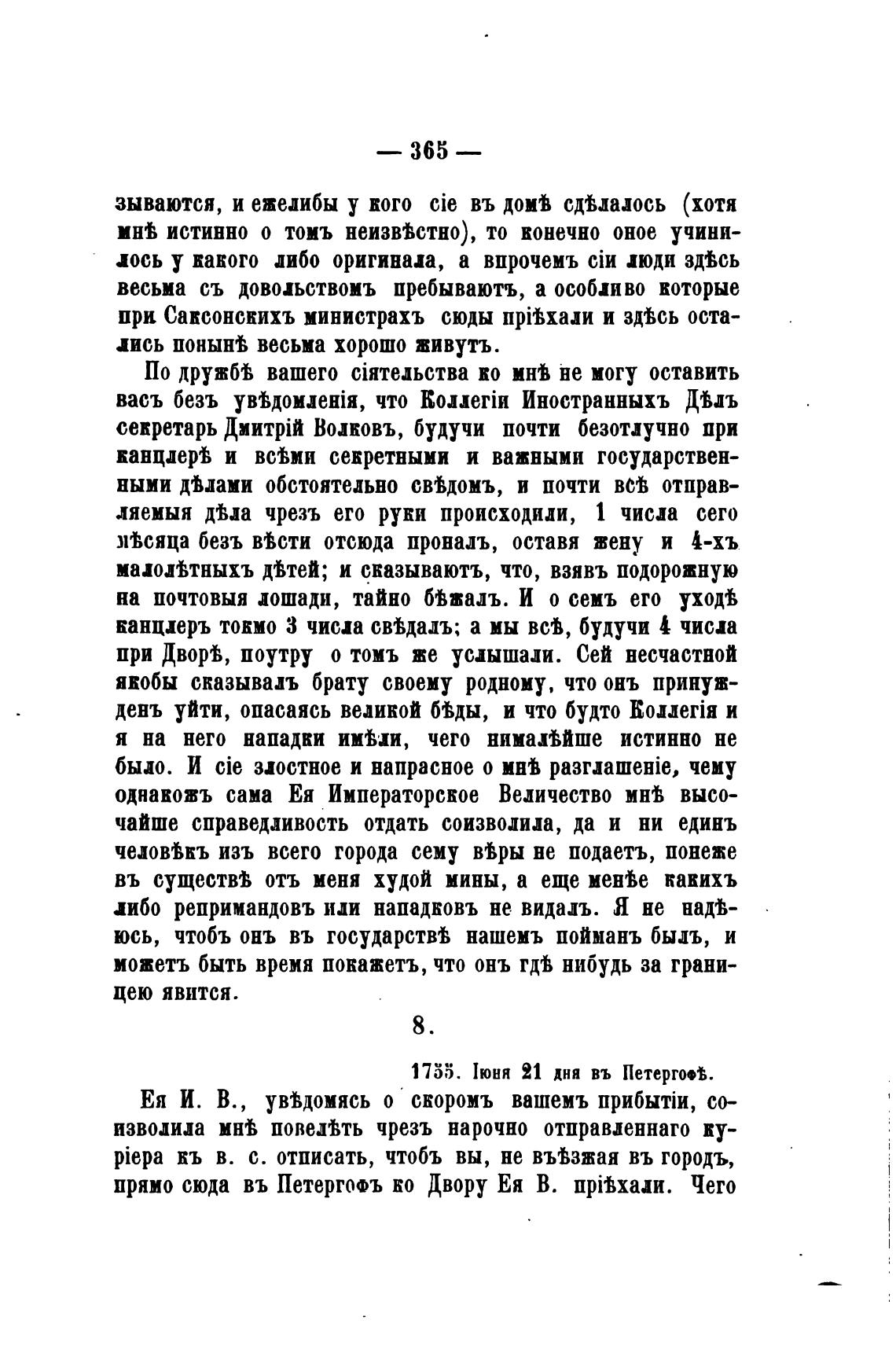прямо сюда въ Петергшъ ко Двору Ея В. прЊхаии. Чего
