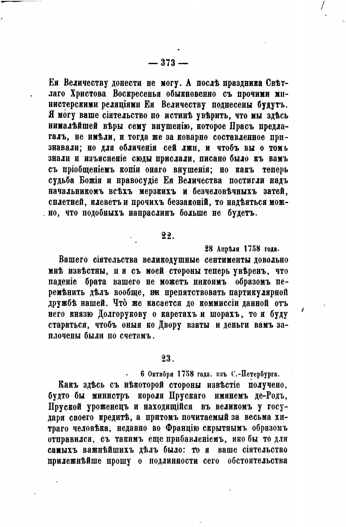 6 Октября 1758 года. изъ С.-Петербурга.