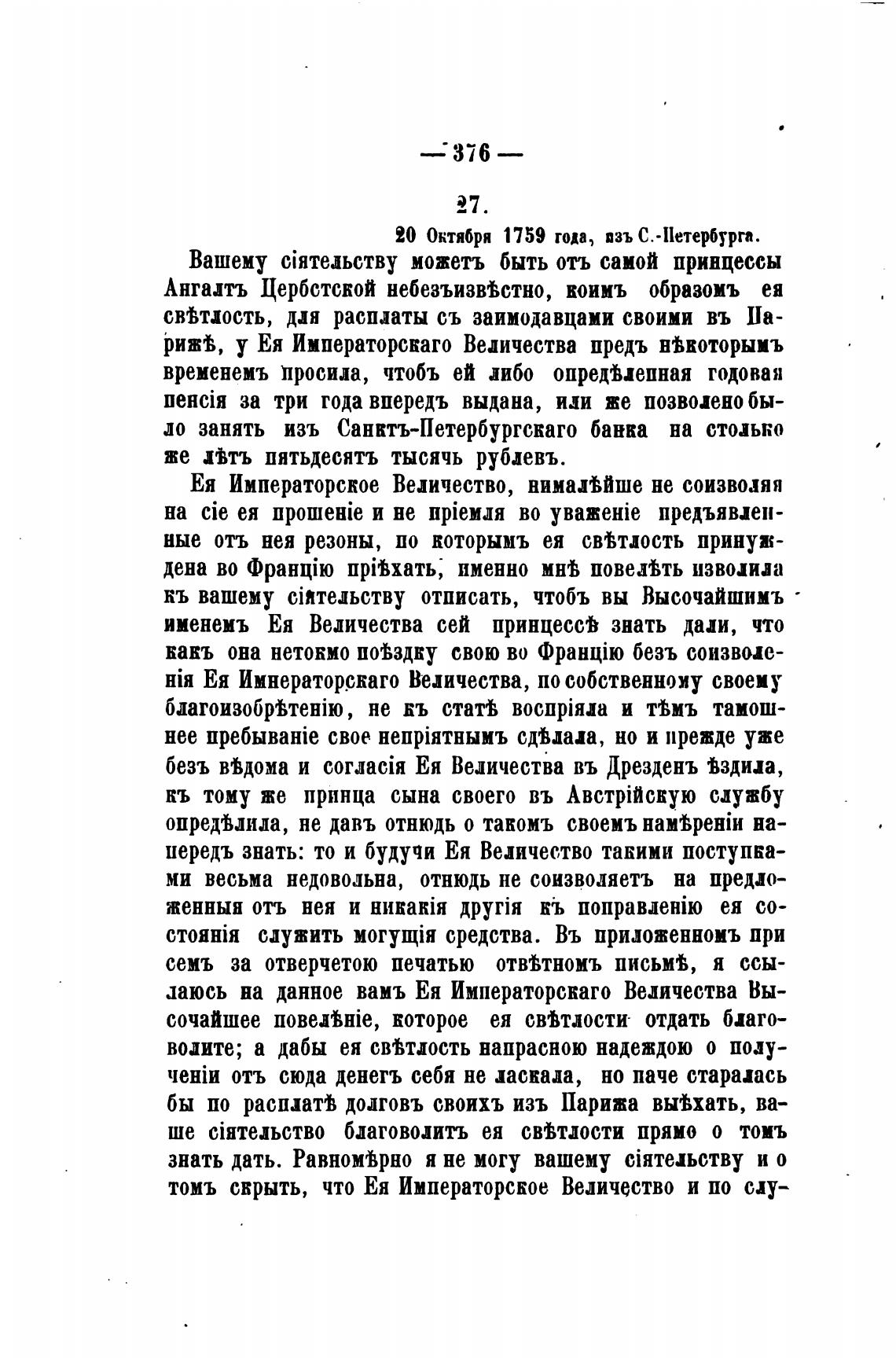 у Ея Императорскаго Величества предъ нВкоторымъ