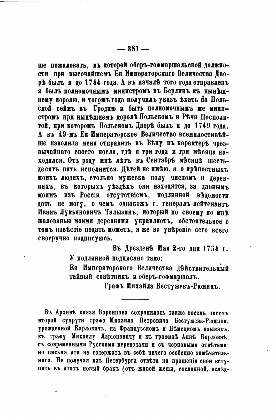 Граоъ Михайла Бестужевъ-Рюминъ.