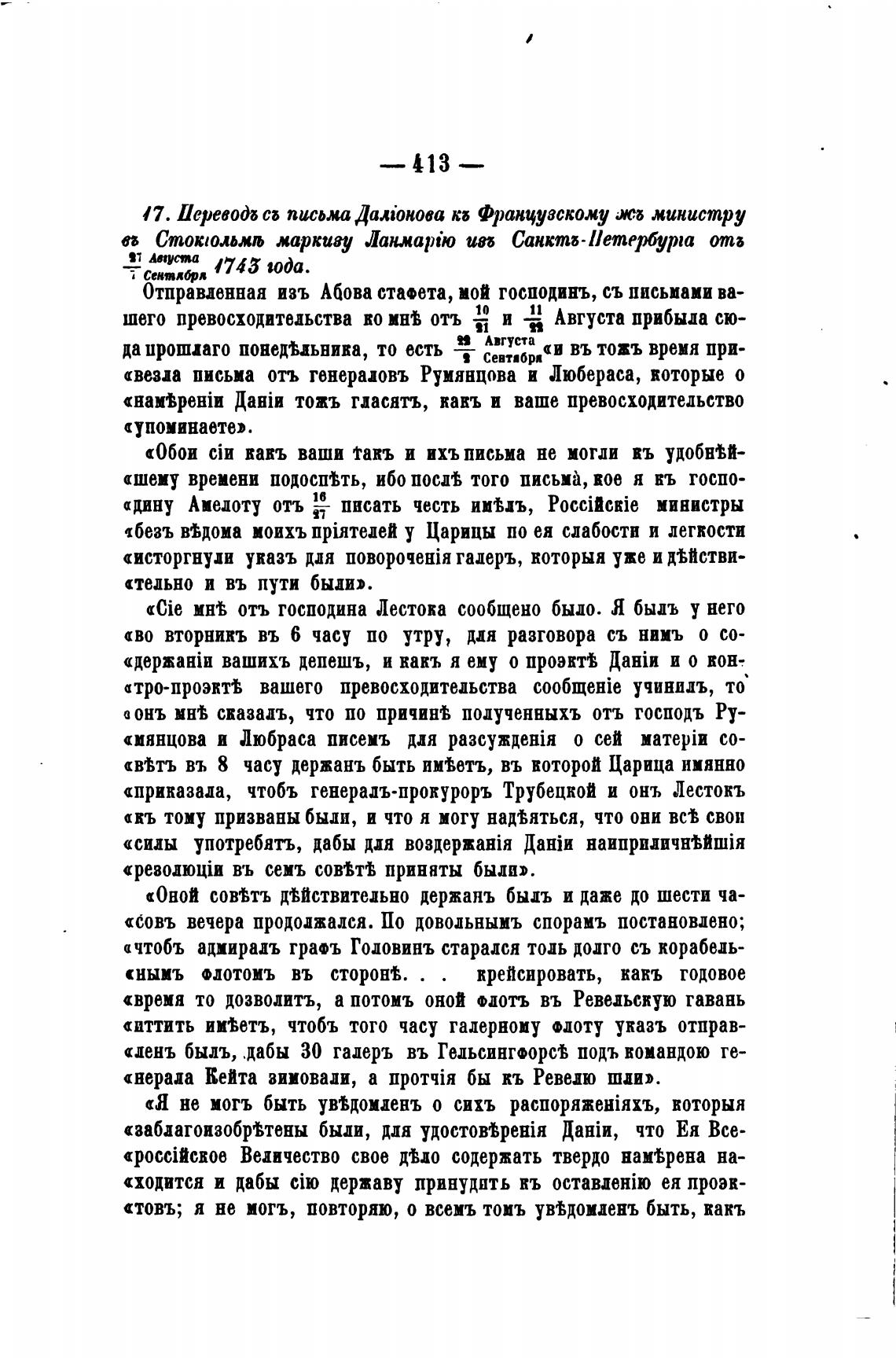 «Cie мнВ отъ господина Лестока сообщено было. Я быль у него