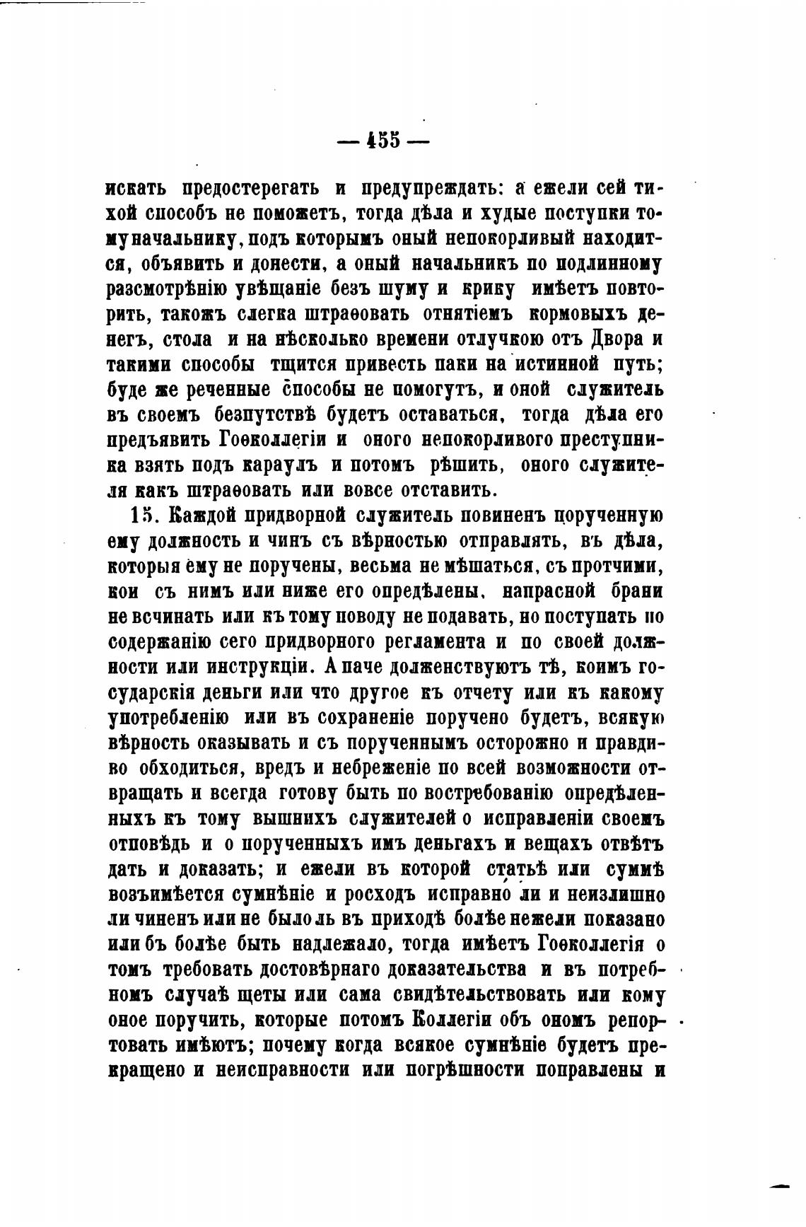 15. Каждой придворной служитель повиненъ порученную