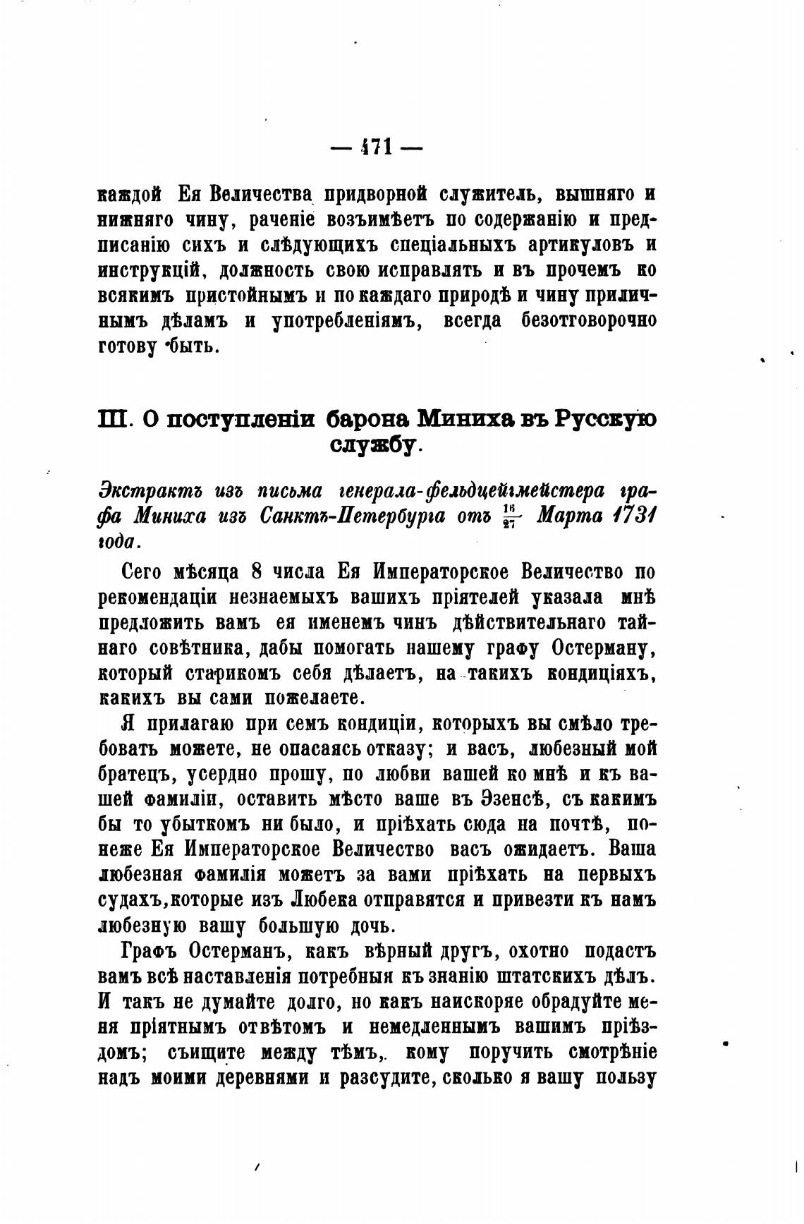 Ш. О барона Миниха въ Руссвую