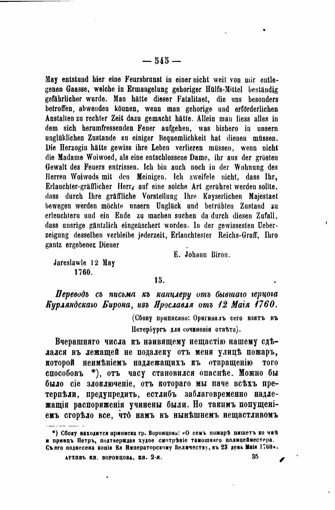 • ) Сбоку ваходится приписка гр. Воронцова: до сень пожар± иишетъ ко мн•Ь