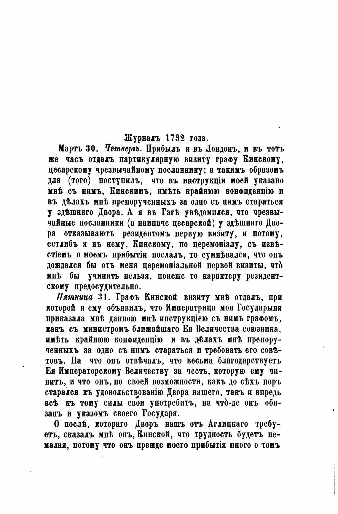 же часъ отдалъ партикулярную визиту граоу Кинскому,