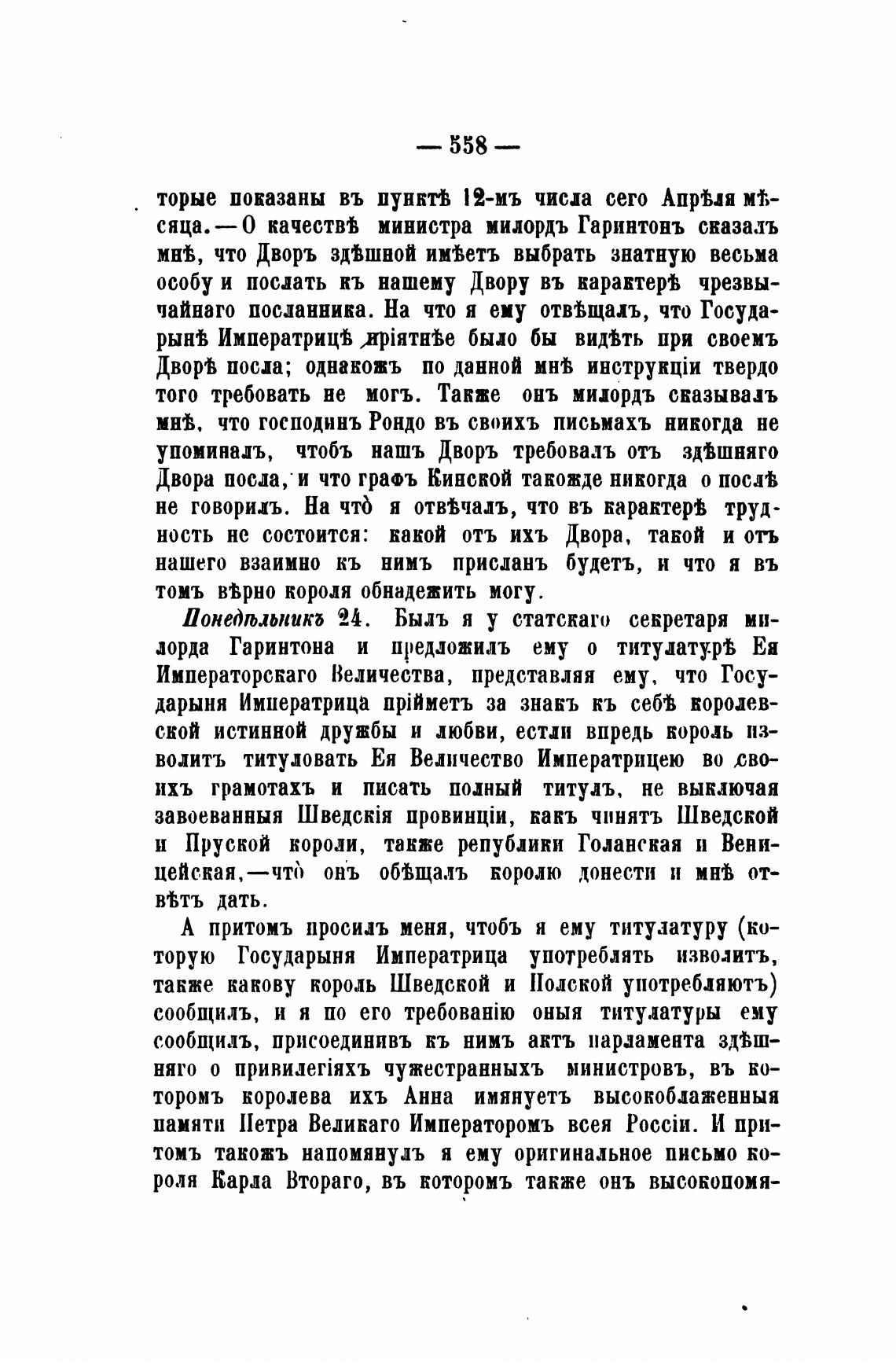 ность не состоится: какой отъ ихъ Двора, таной и отъ