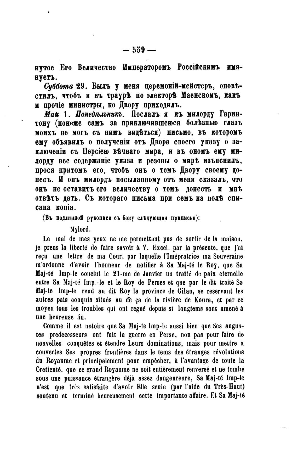 несъ. И онъ милордъ посыданному отъ меня сказал, что