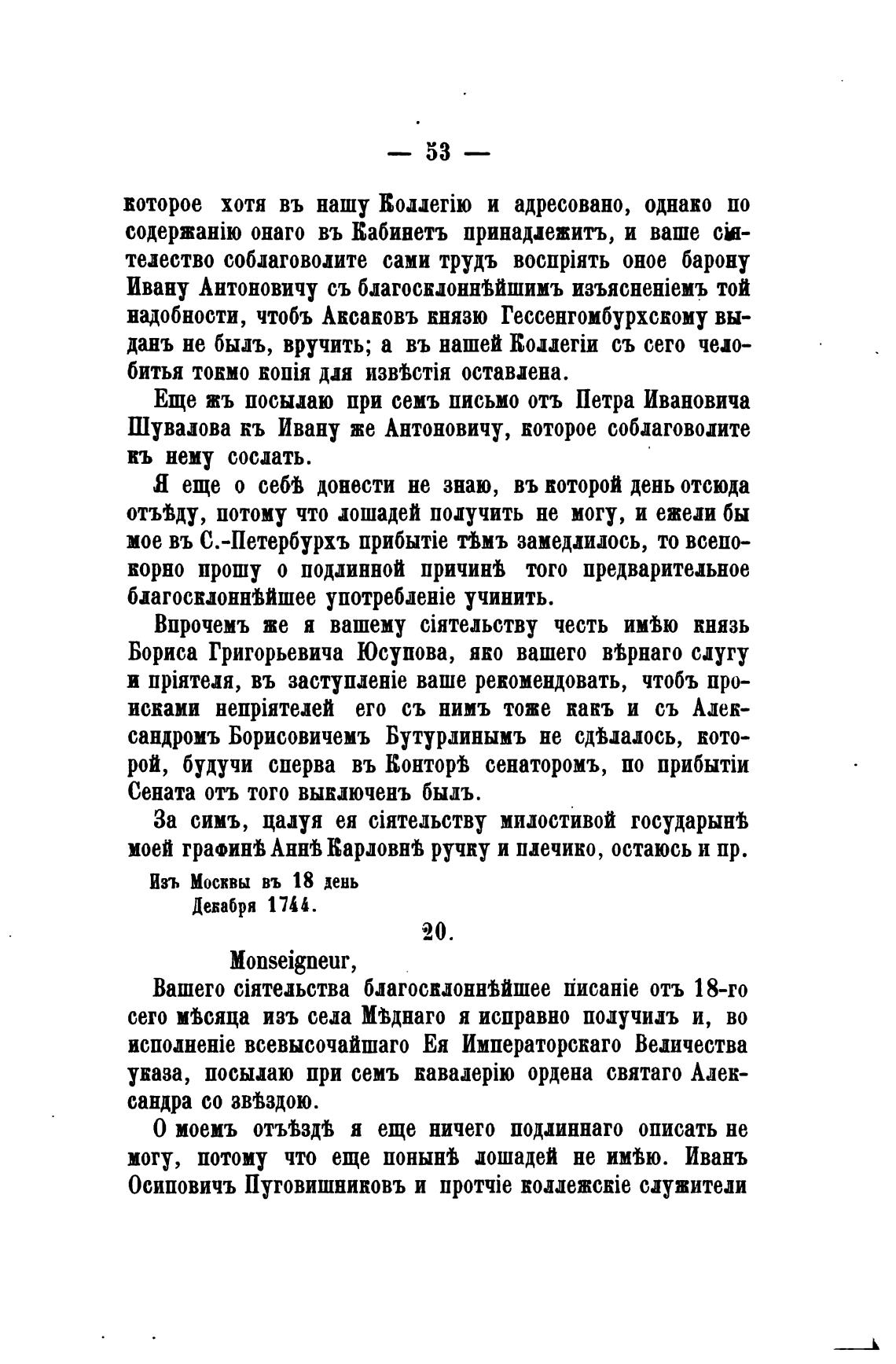 Вашего ciHTHbcTBa благосклоннмшее IirrcaHie отъ 18-го