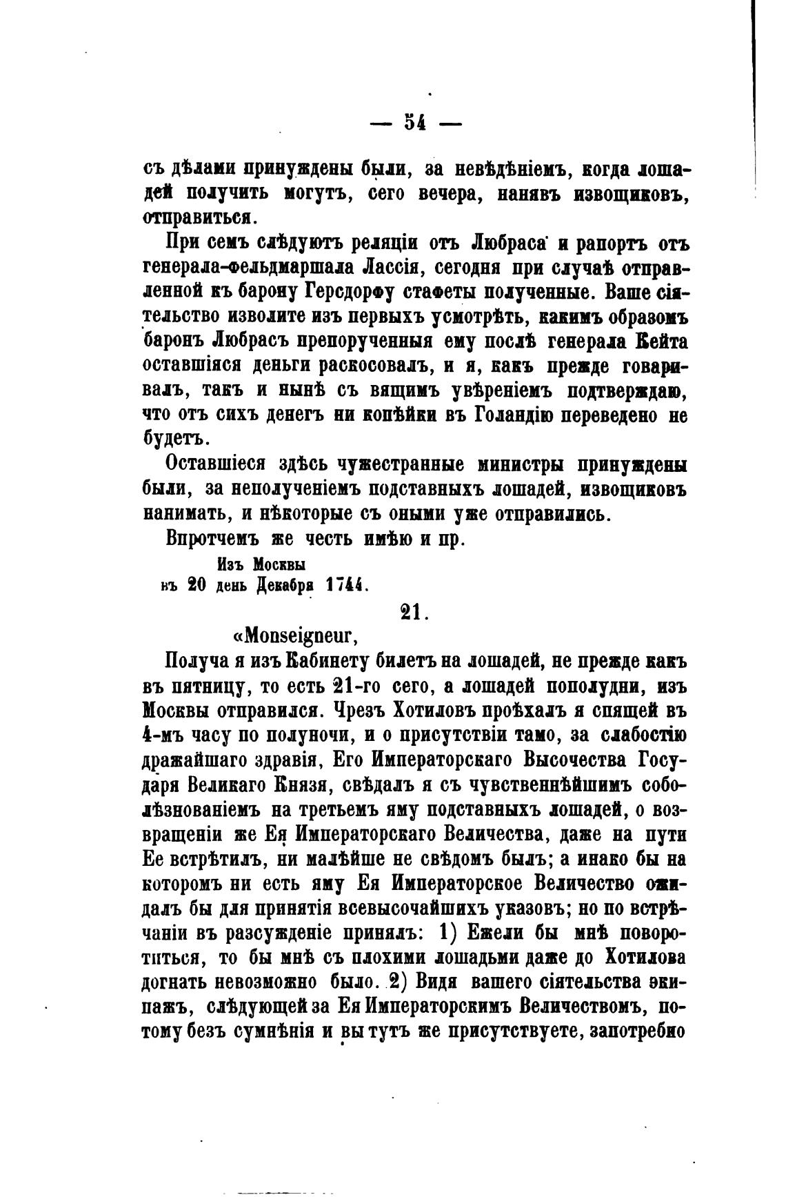 въ пятницу, то есть 21-го сего, а лошадей поподудни, изъ