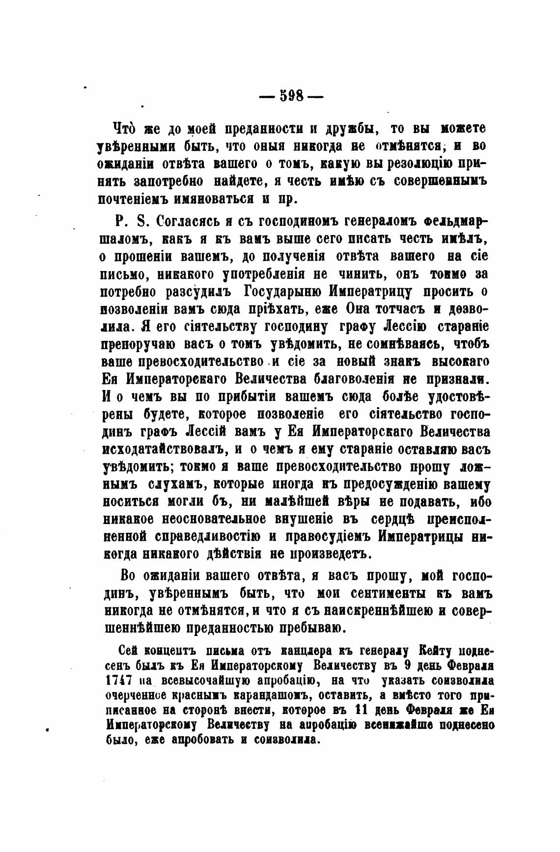 сень быдъ въ Ея Императорскому Величеству въ 9 день Февраля